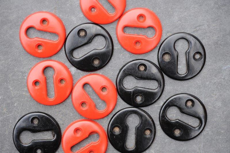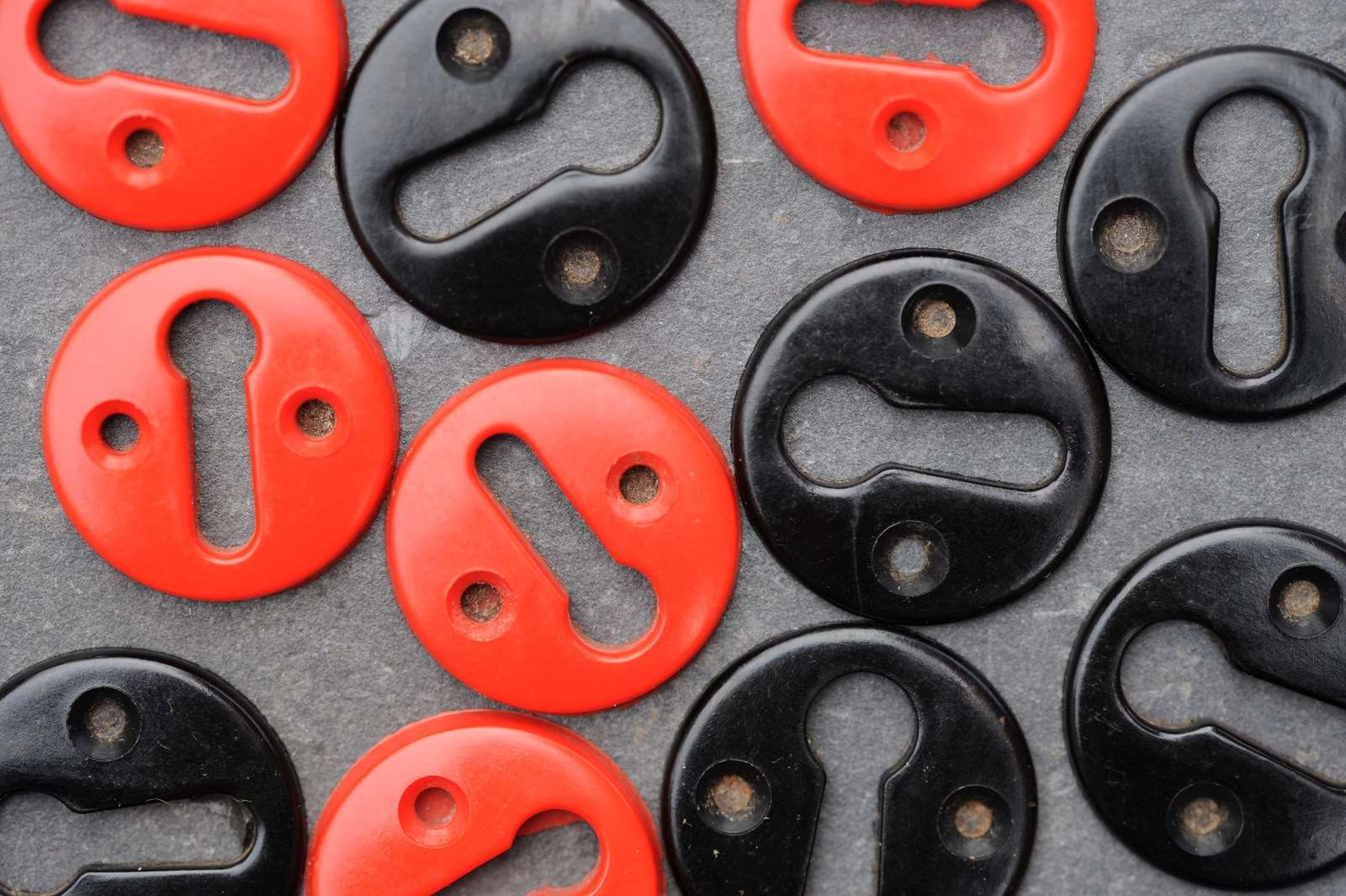 Bakelite Door Escutcheon Red Black Door Knob Handle Art Deco Reclaimed Key Hole