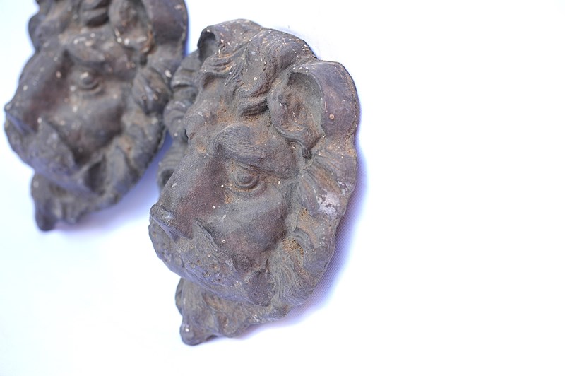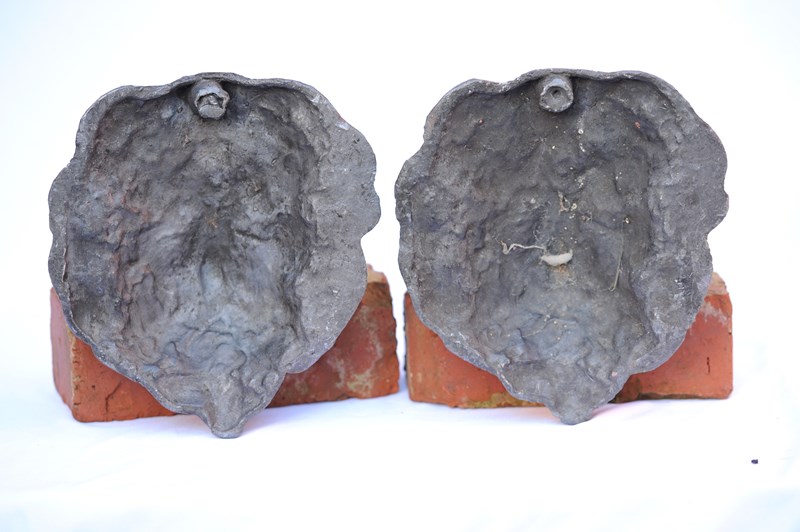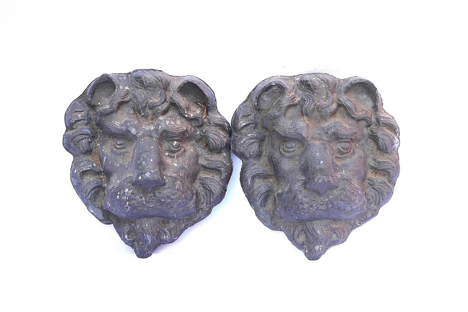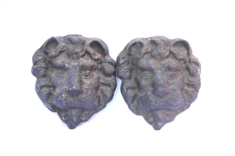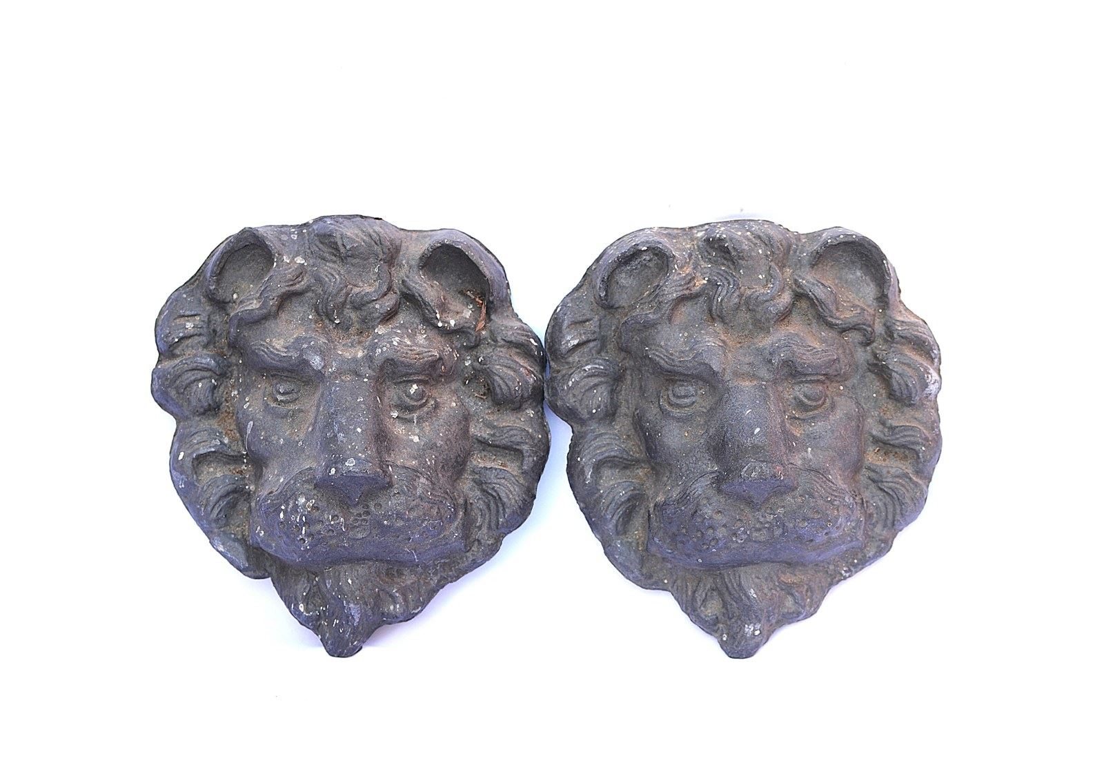 Barbary Lion Mask Pair Antique Lead Lion Head Antique Gate Pillar Wall Mounts