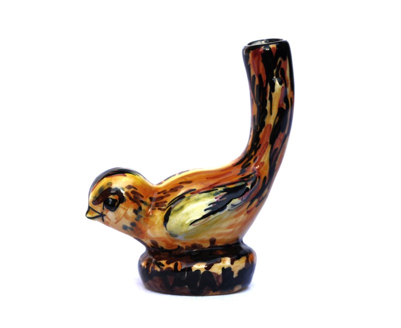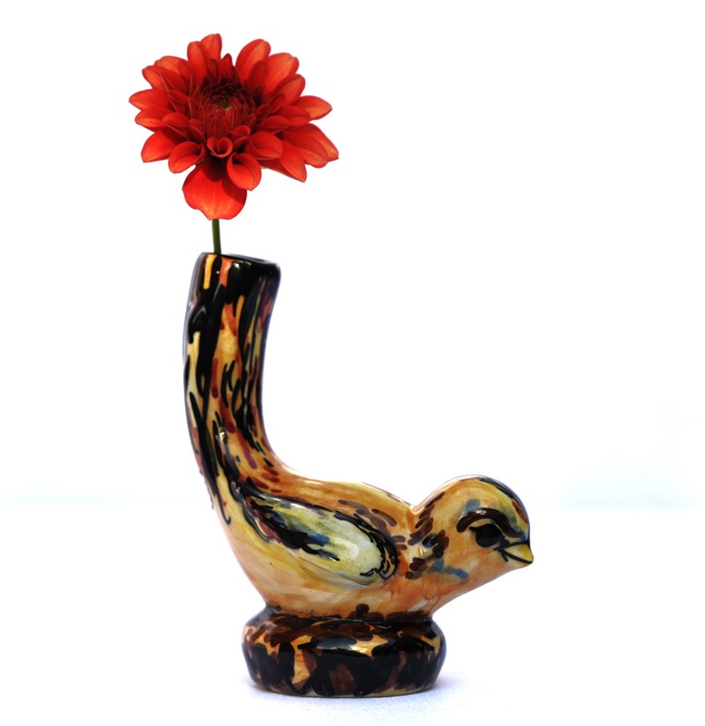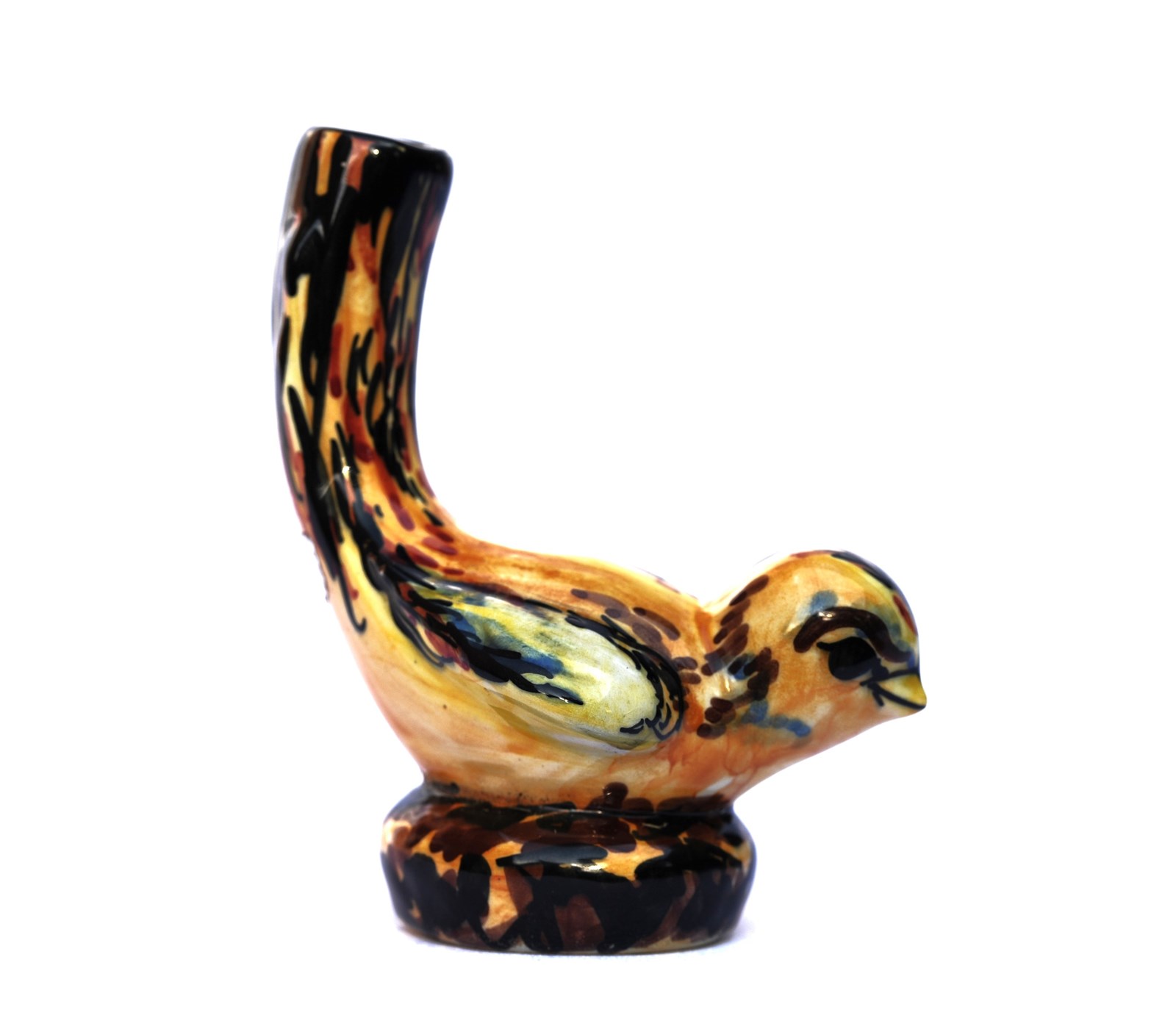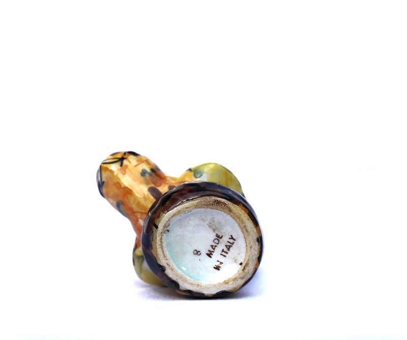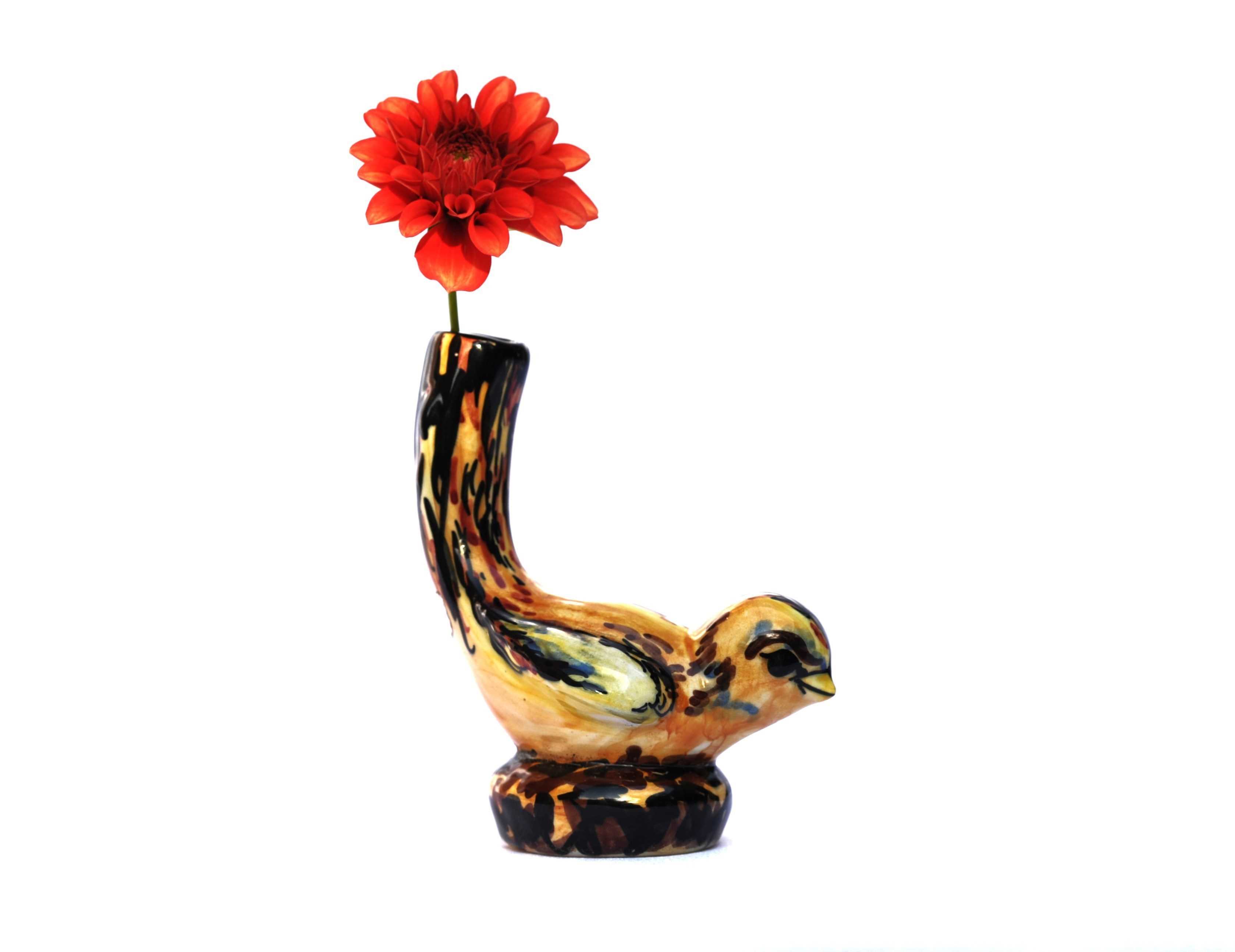 This is such the sweetest little bud vase or mini flower vase. Italian made, mid 20th century in date. Reminiscent of a long tailed tit, but with the colours seen through the artists eye who hand painted it. Glazed finish & in very good condition. It will hold 3 or 4 small flowers & it displays beautifully either in use or on its own. Any questions please do not hesitate to ask. Sale includes UK inland tracked delivery.
