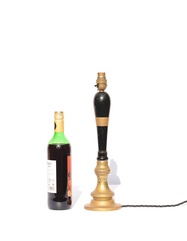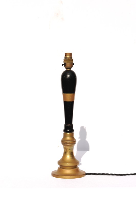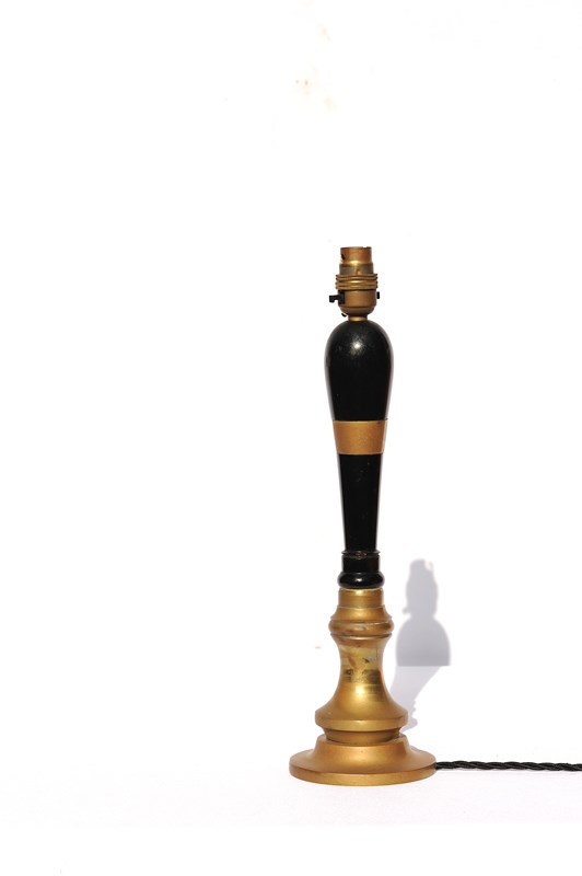Generally we are not huge fans of items that have been converted to lighting. However whatever it is, this lamp has it in bucket loads! Late 1940s period back street pub beer pump lamp, say that again after you've had a few! This had already been converted to a lamp when we bought it a few days ago, we have simply changed the cable to a more appealing black fabric covered twisted flex. Bayonet bulb fitting. Of brass & ebonised turned wood construction.