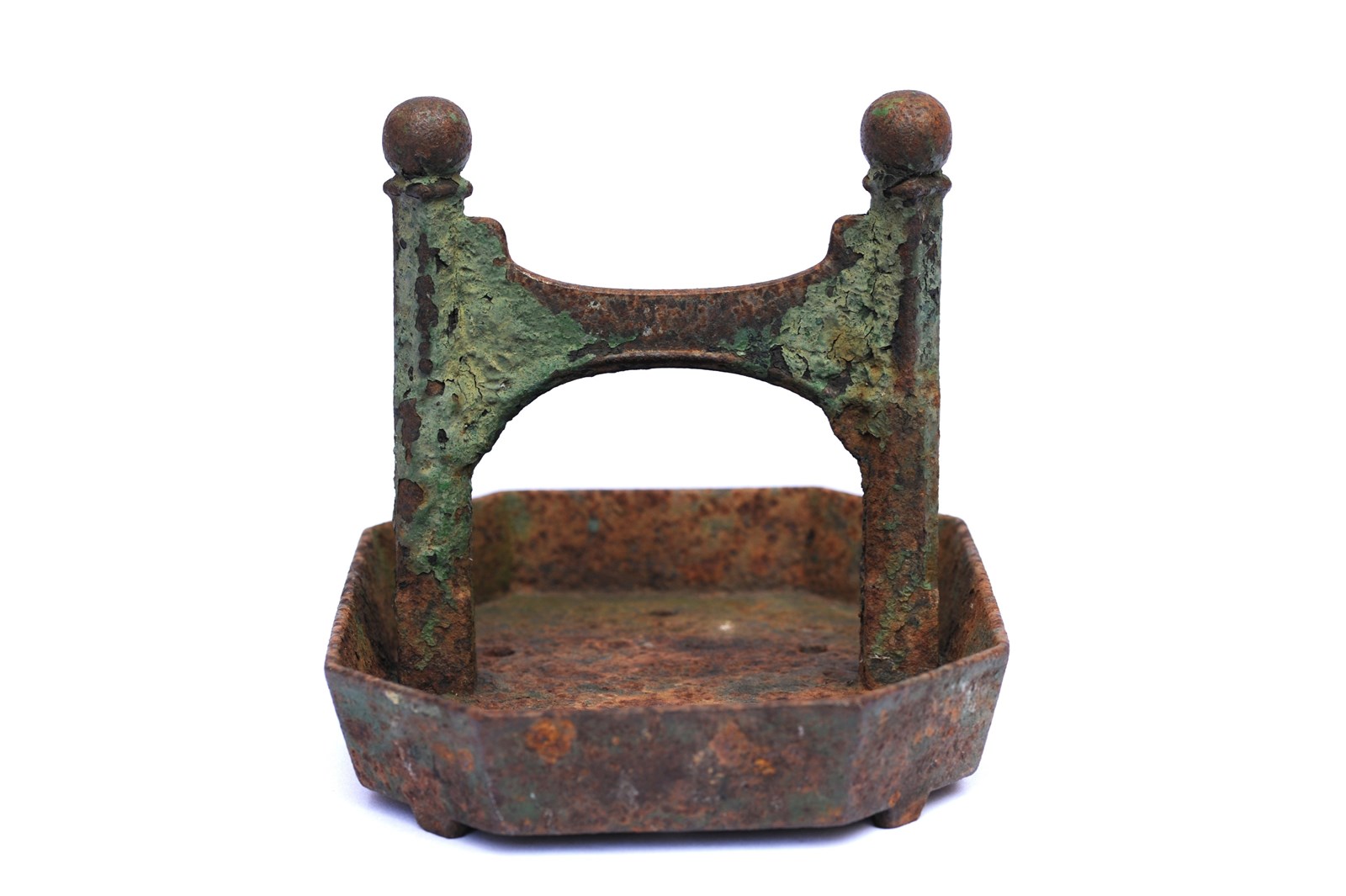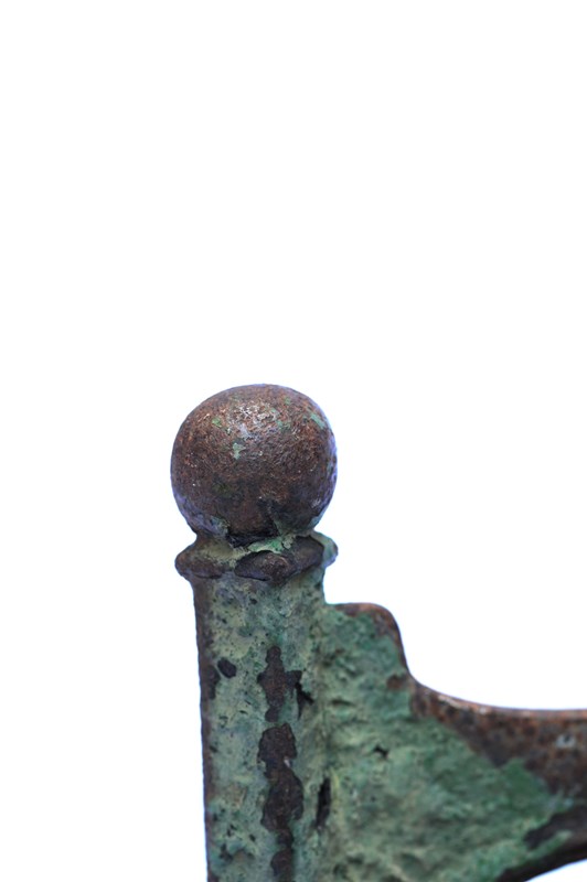 A good English late 19th-century cast iron boot scraper with ball finials & remnants of the original paint. Dimensions 14" x 10" x 9.5" H. 10 kg in weight. Good overall English garden weathered condition with no damage. Sale includes delivery within the United Kingdom.