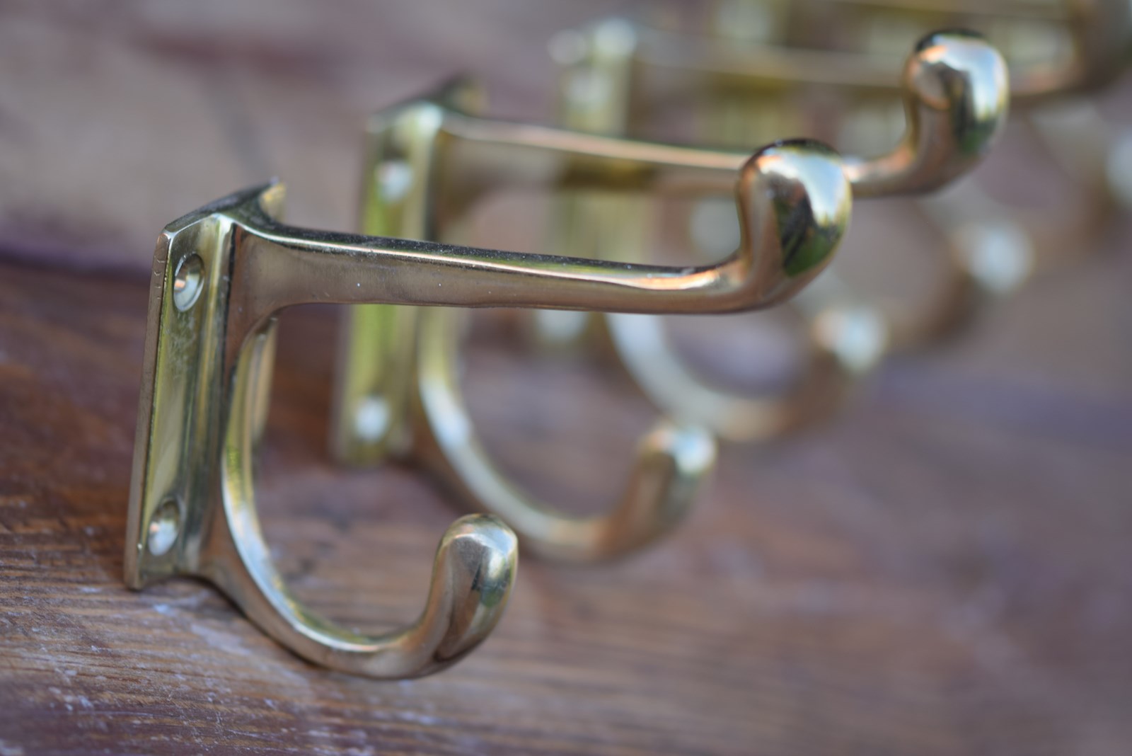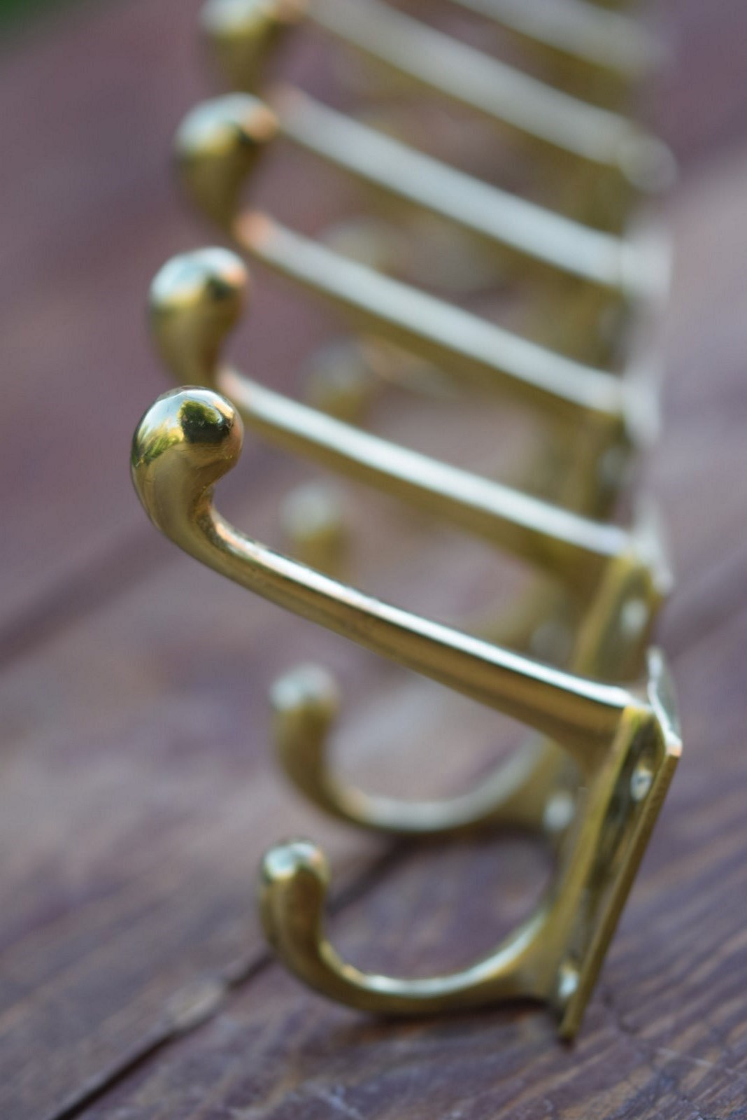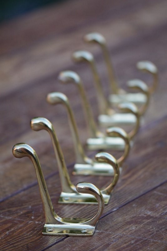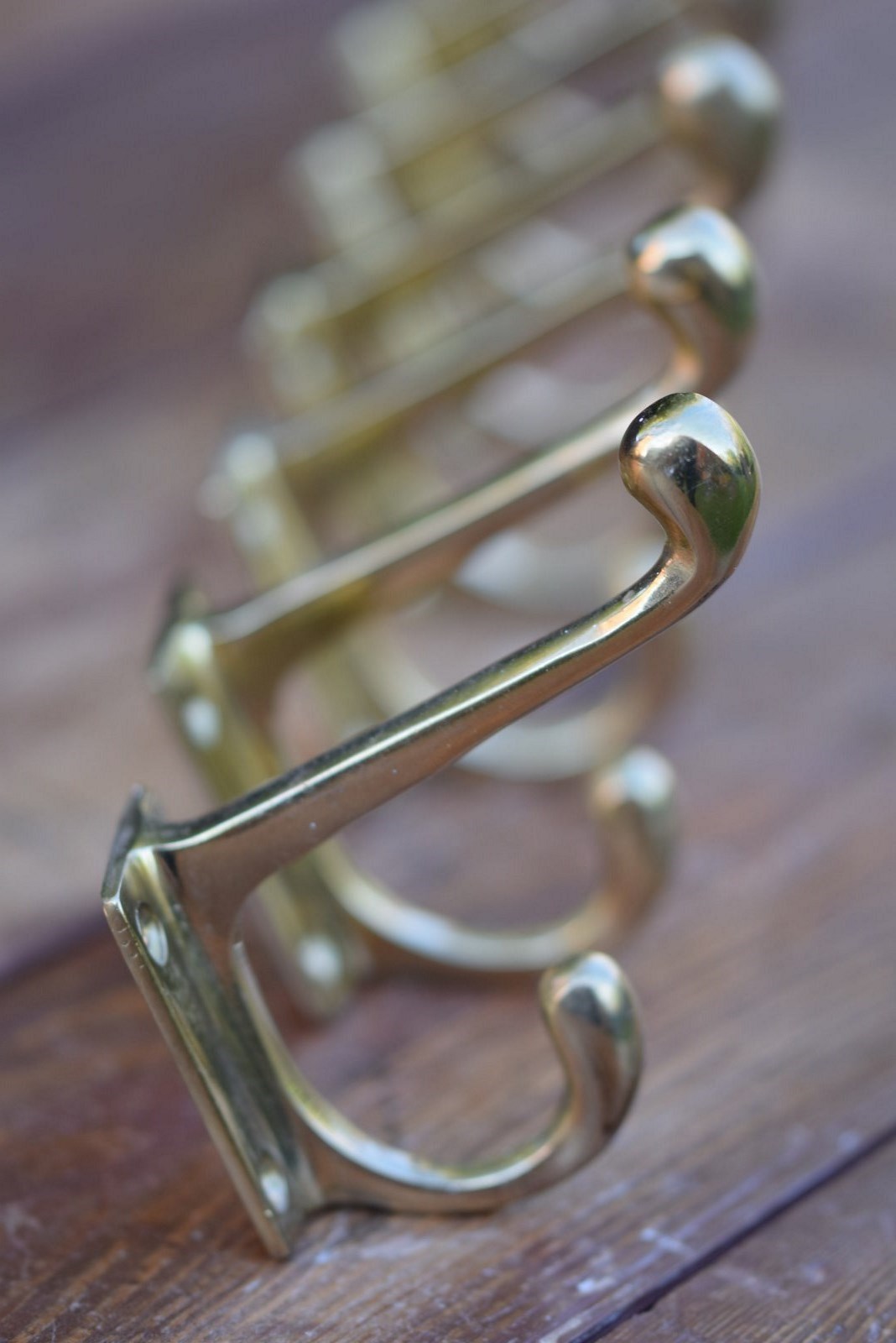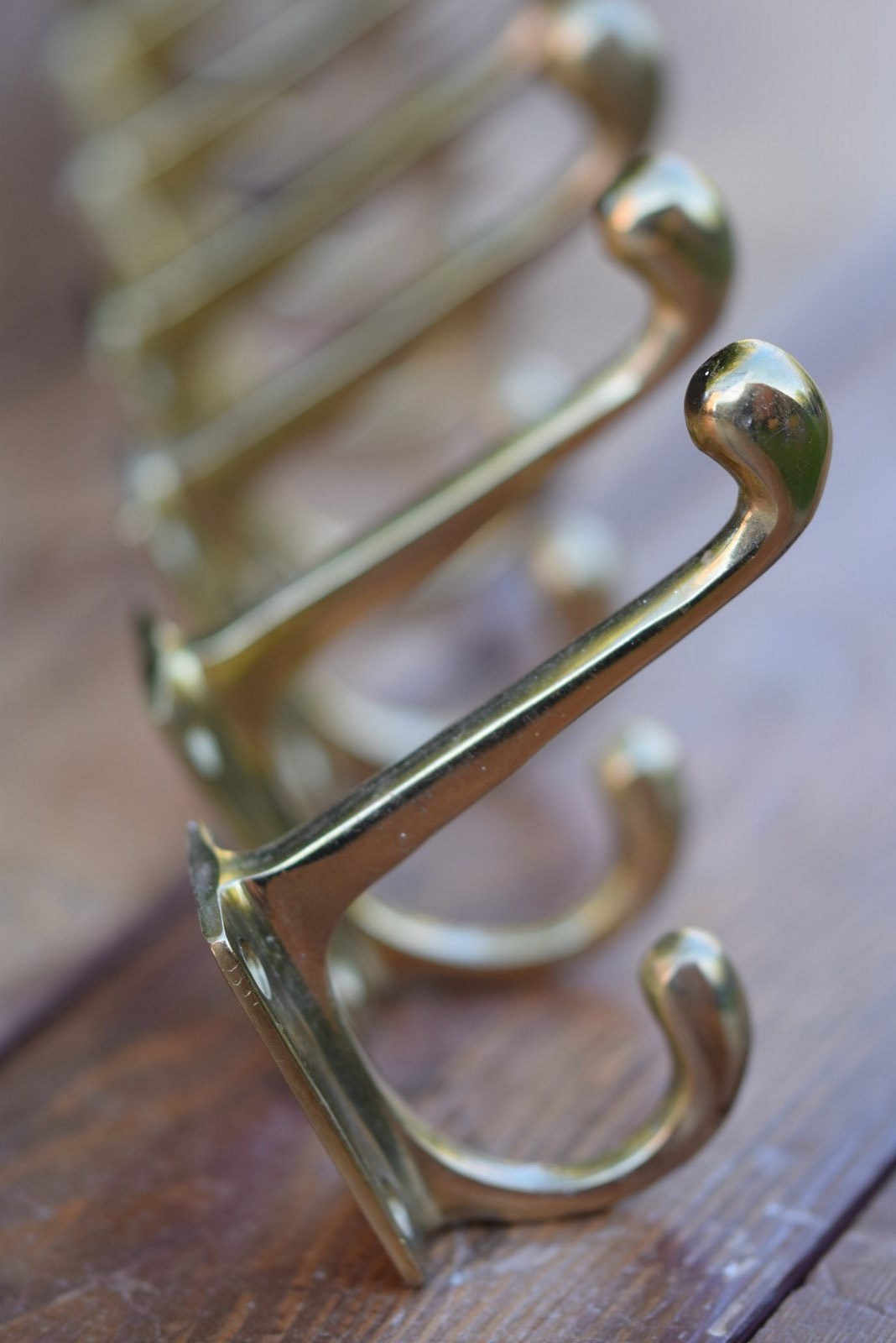 Brass Coat Hooks Reclaimed Old Pegs Hall Stand Rack Clothes Rail Vintage