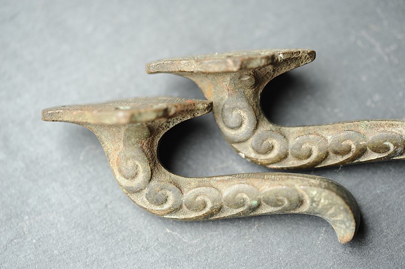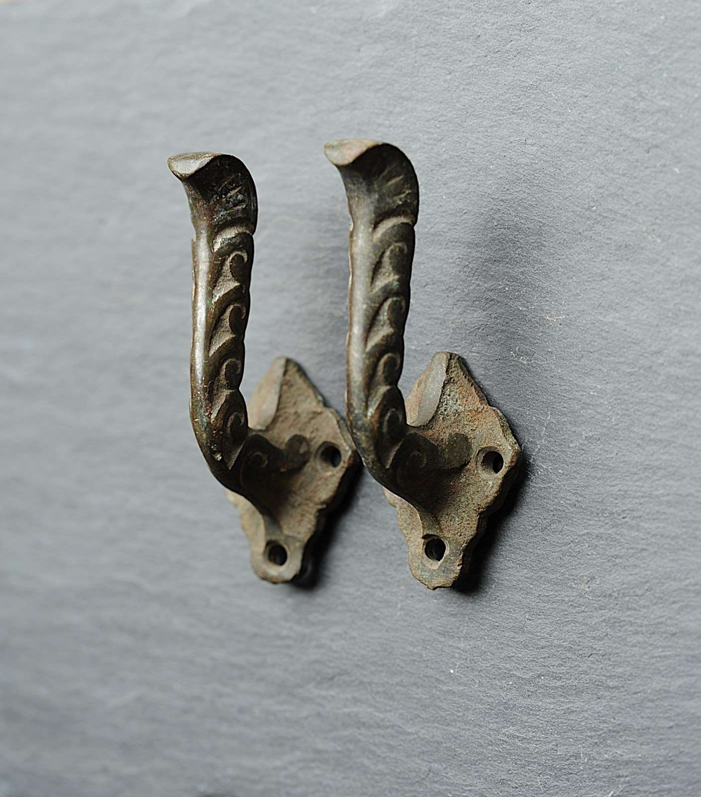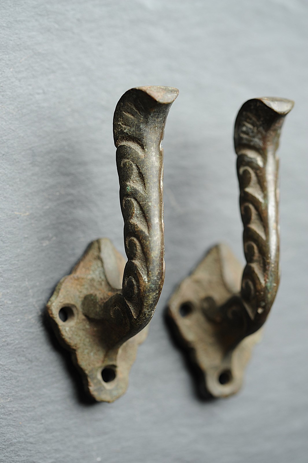Exceptionally rare to find circa 1870 English Bronze Curtain Tie Back Hooks. Pair of. In totally original untouched condition, now carry the most superb natural time aged verdigris colour. Height just shy of 4 inches with a fitted projection of around 2 inches. Weighty at around a third of a kilo the pair. Sale is for the pair & includes delivery within the United Kingdom.
