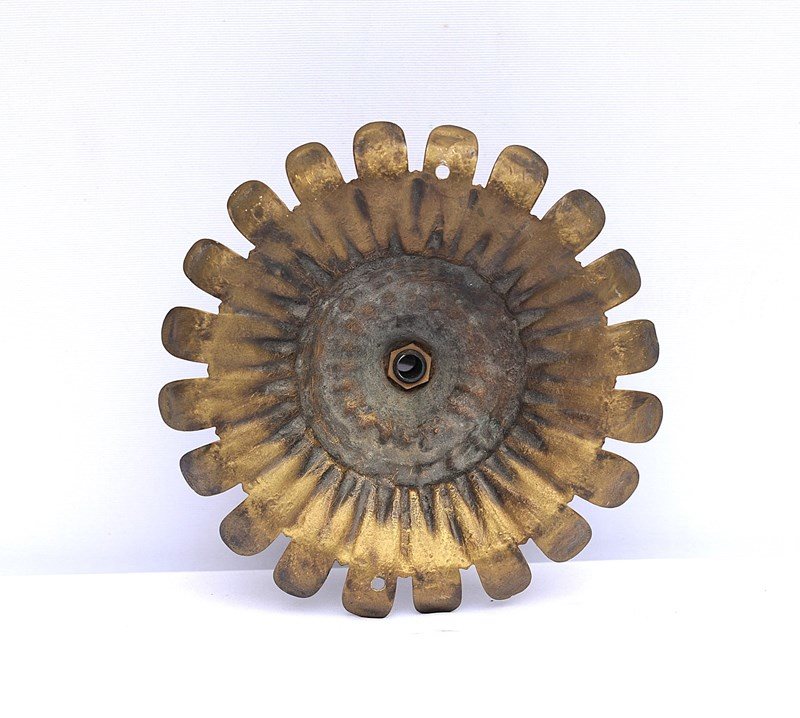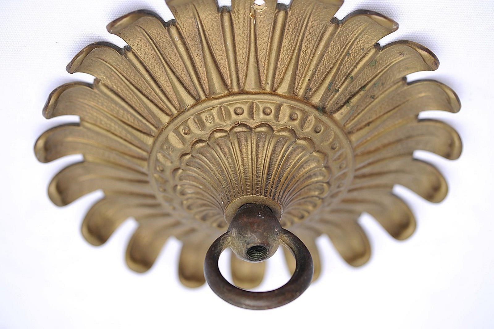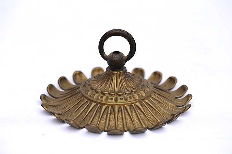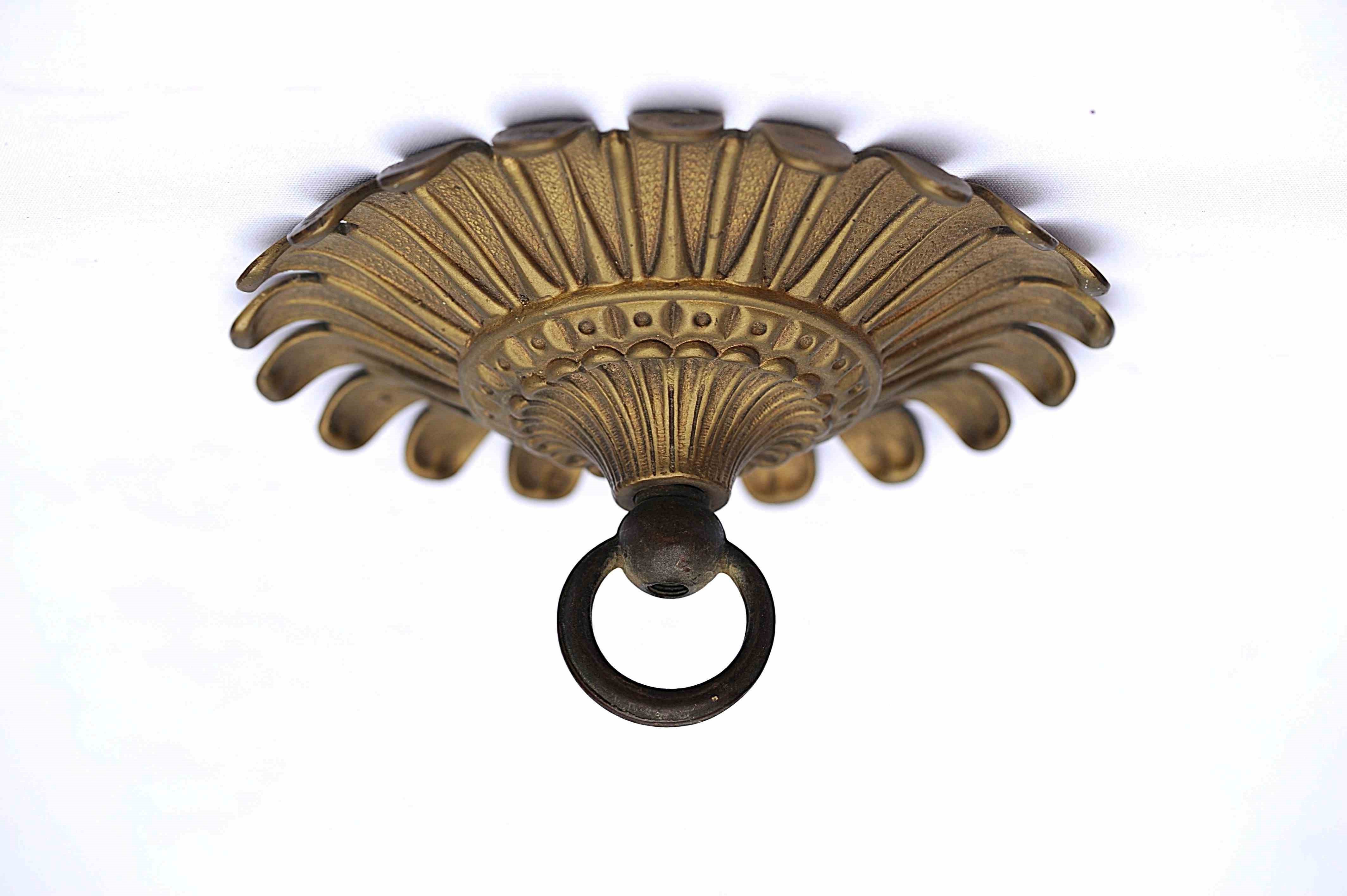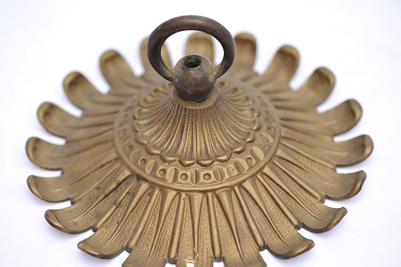 A wonderfully ornate large antique brass ceiling rose hook. Reclaimed. Early 1900s in date. Approximately 8 inches in diameter. Three quarters of a kilo in weight. Old untouched good condition with a nice colour. Sale includes delivery within the United Kingdom.