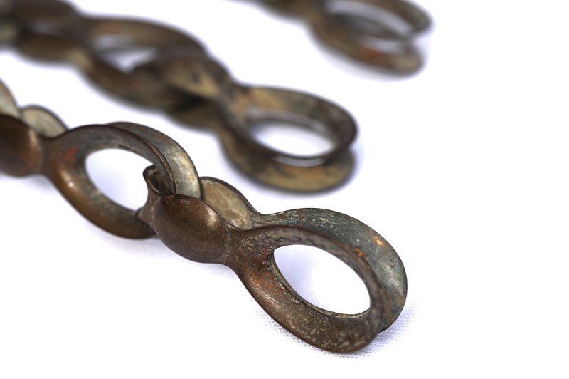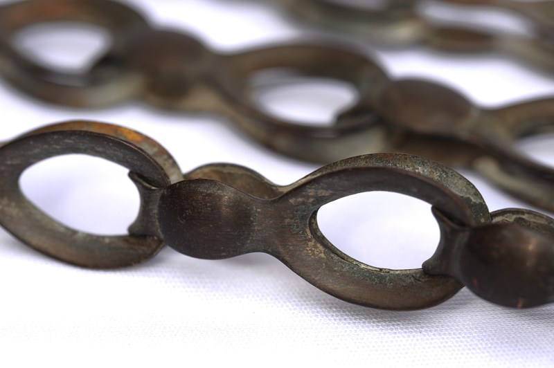 Untouched solid brass late 19th century chandelier chain. Each approximately 20 inches / 50 centimetres. Just over 100 grams each chain. Strong chain. Sale includes UK inland delivery.
