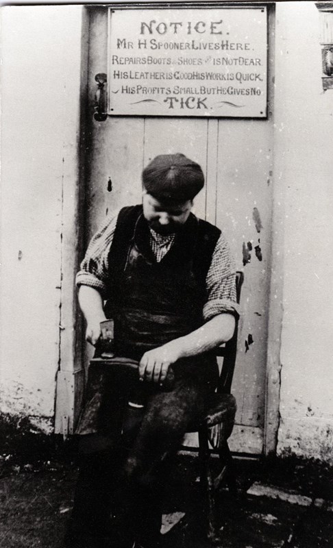 Harry Spooner born in Petworth in June 1886 - died December 1961 aged 75. Pictured last image. Harry Spooner working outside his shop come home in Arundel around 1920. Above him reads another one of his witty trade signs. He must have been quite a local character!