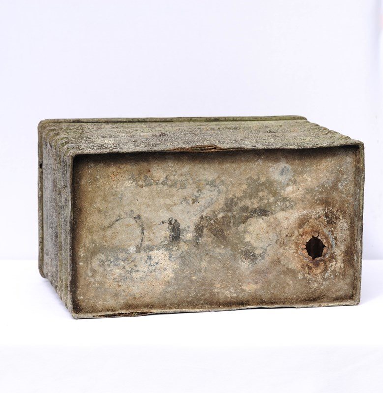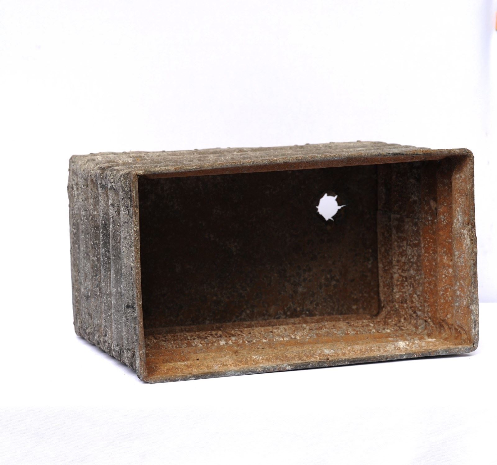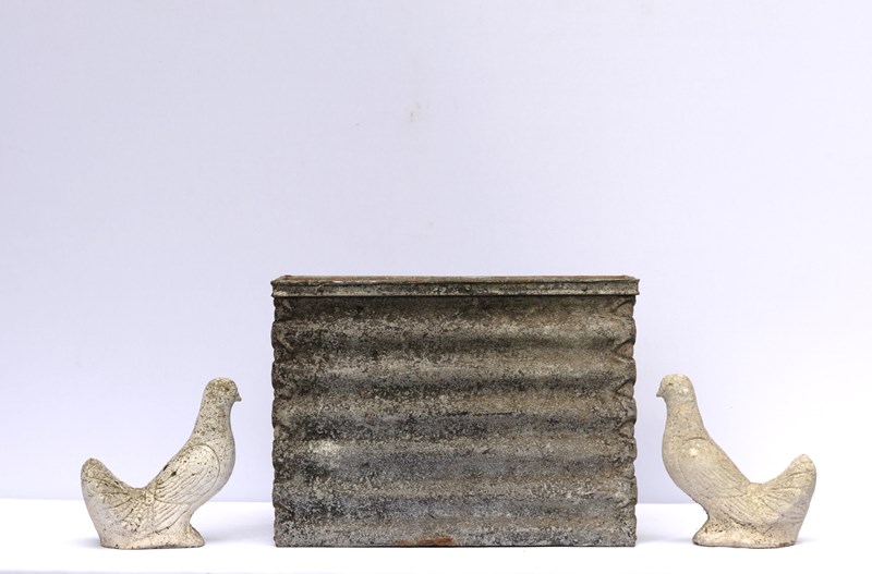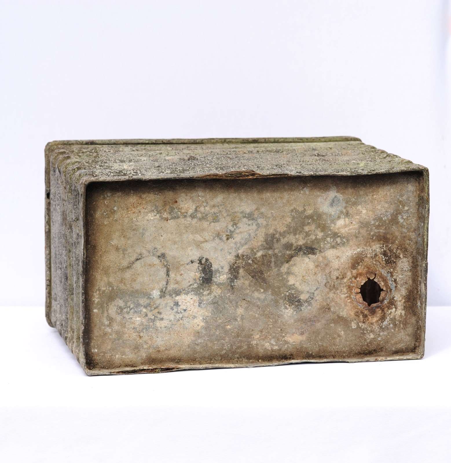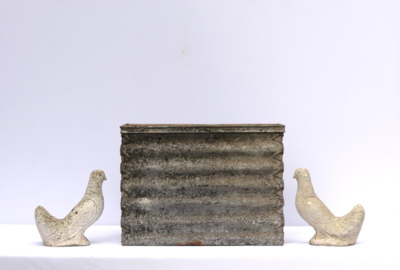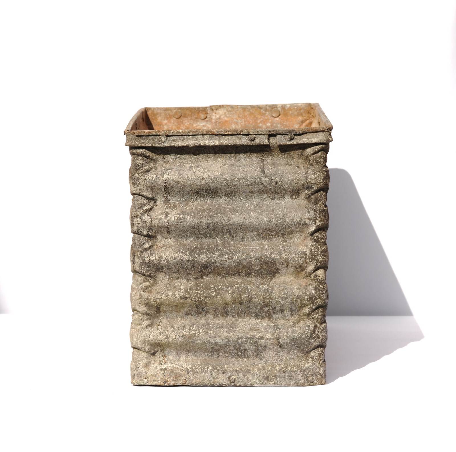 An extremely rare English Corrugated Galvanised Metal Water Cistern Tank. Now would make a highly unique planter. The old water pipe hole to the base will provide the necessary drainage. It is in good overall untouched original condition, bottom is good. W 18" D 10" H 14". Free UK delivery