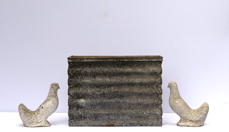 Corrugated Trough Antique Galvanised Metal Planter Cistern Water Tank Pot Flower