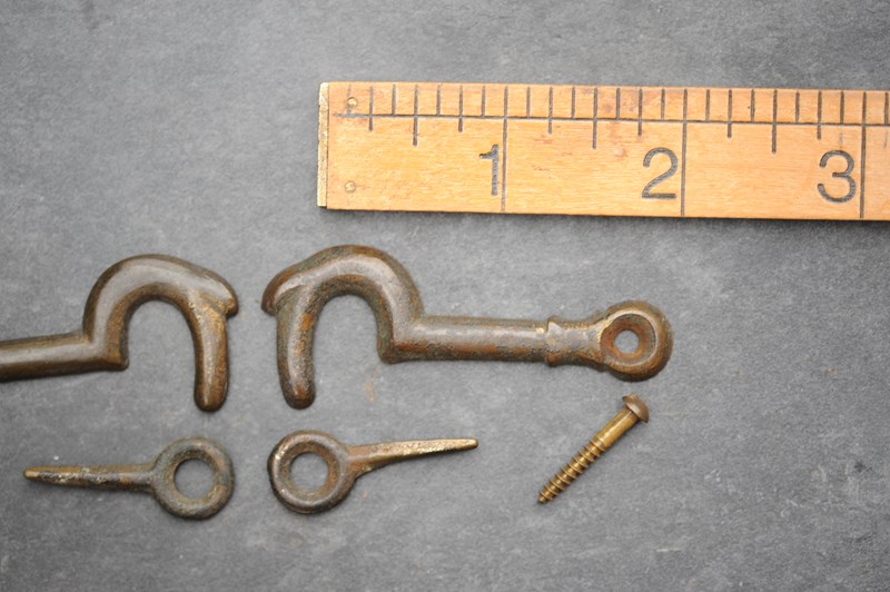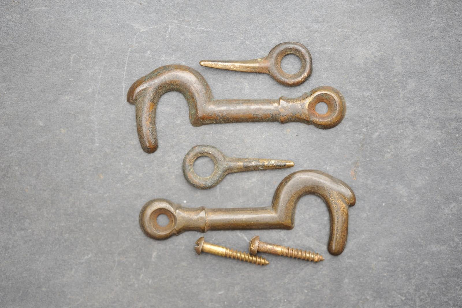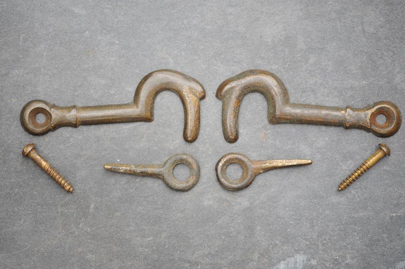 Cupboard Latch Hooks Door Catch Hook Pair Brass 19Th C Victorian Reclaimed Lock