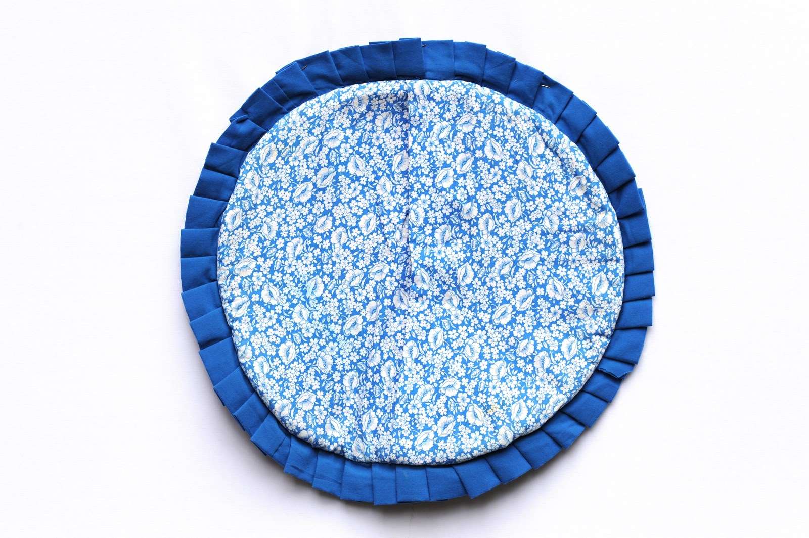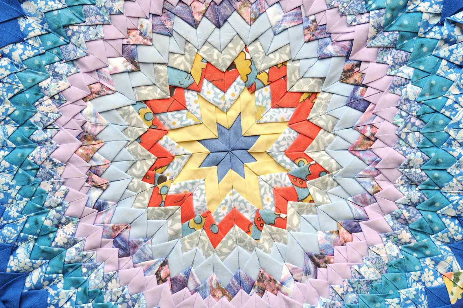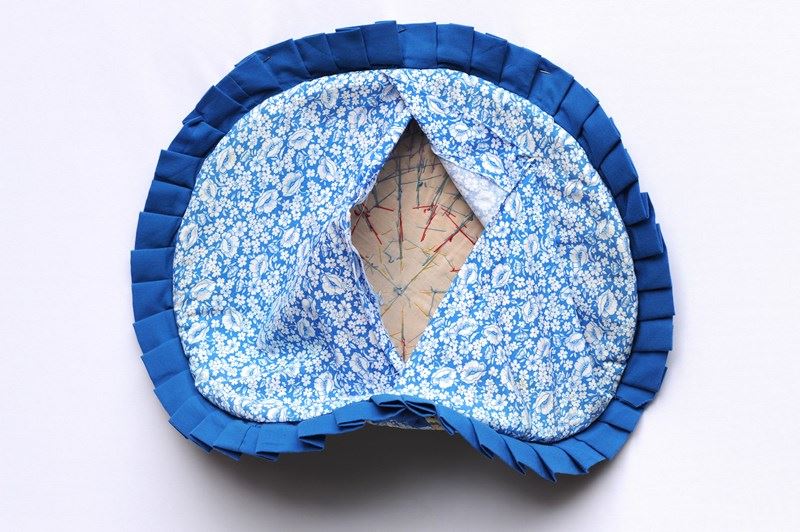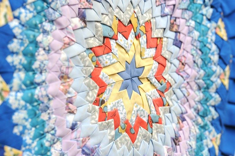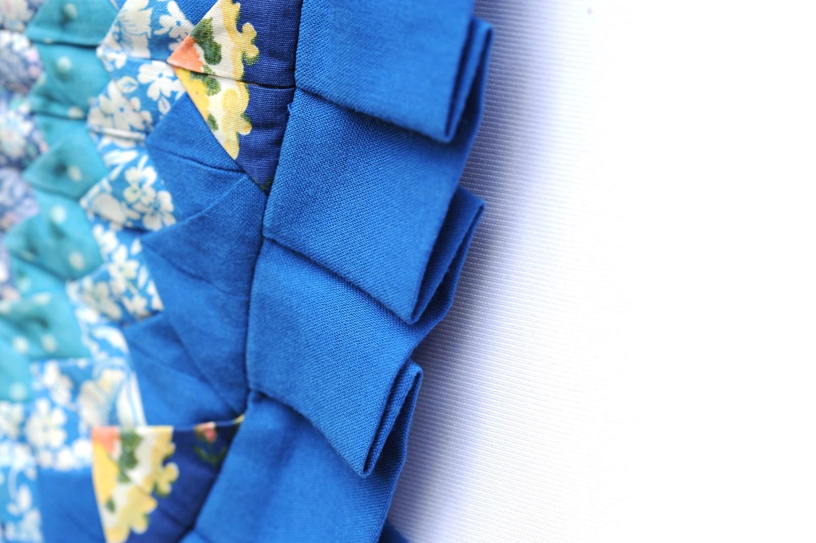 Well this is just the most amazing cushion cover we have ever seen. Mid century in date, excellent condition. English, completely made by hand and eye. Small pieces of cotton fabric carefully cut, folded & sewn into place. It must have taken weeks to make, a little bit every evening no doubt. Approximately 20 inches in diameter. Although designed as a cushion cover, it would sit quite well just as a flat table centre piece. This is the cover only, no cushion is supplied with it. Free UK inland tracked delivery.
