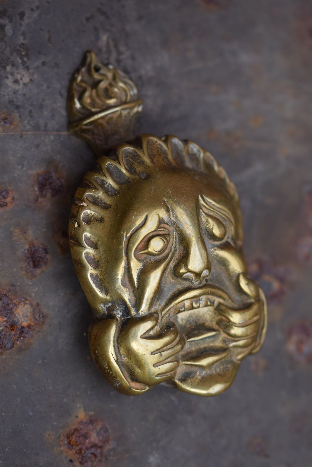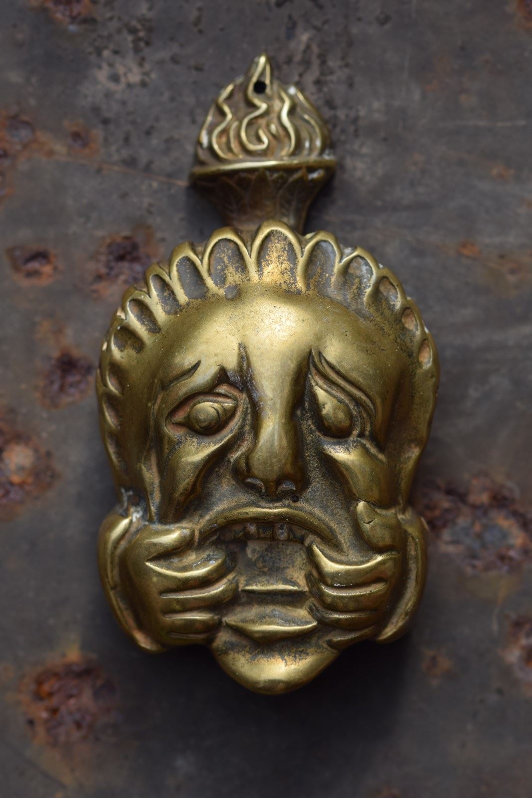 Dentists Door Knocker Vintage Old Reclaimed Brass Face Mouth Open Teeth Pain Old