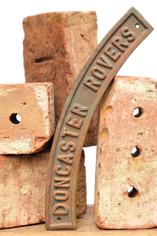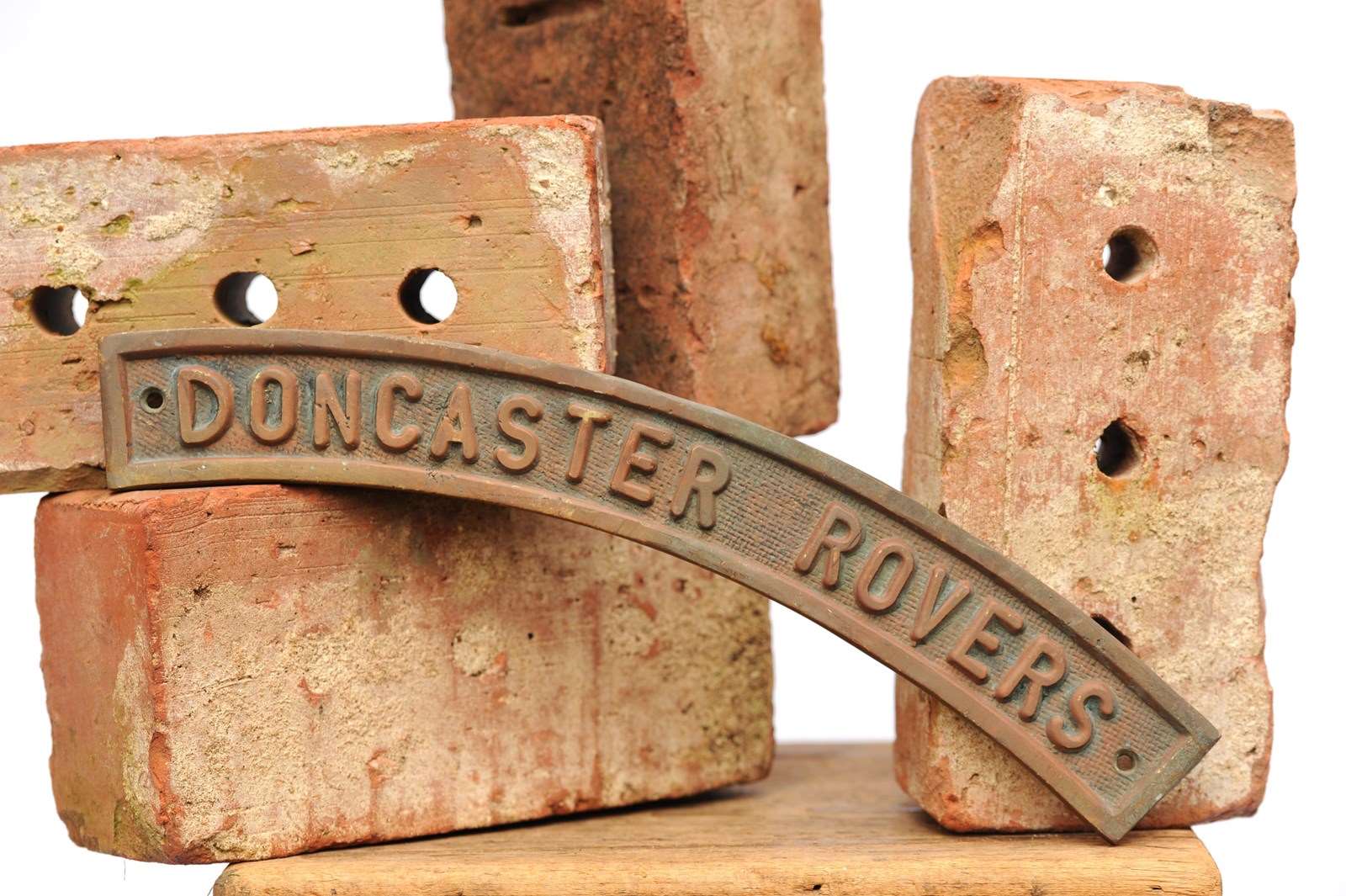 Vintage reclaimed solid brass Doncaster Rovers sign / plaque. Length span 14.5 inches with a 2 inch depth. Mid 20th-century in date. Nice colour from being exposed to the elements.