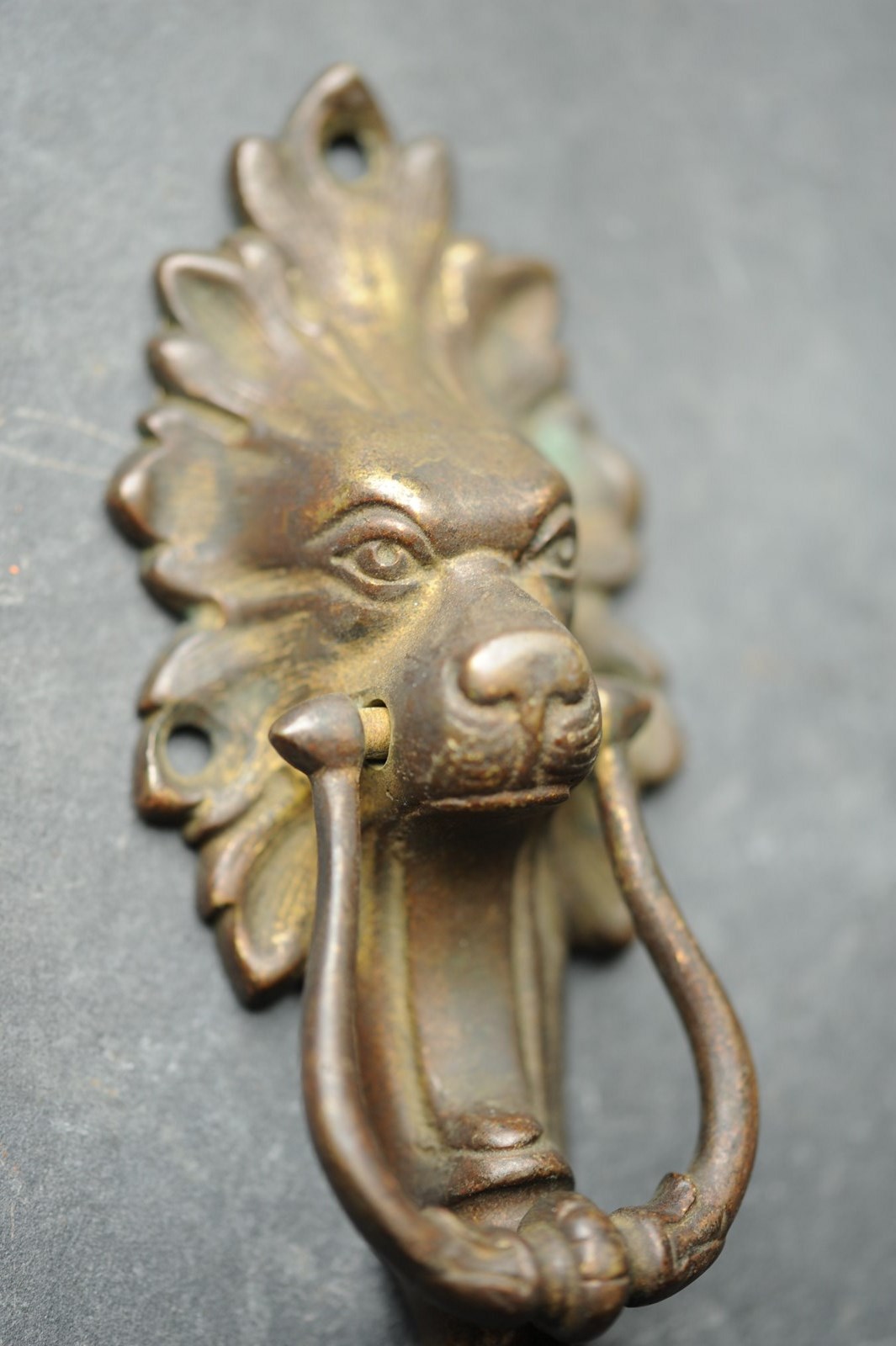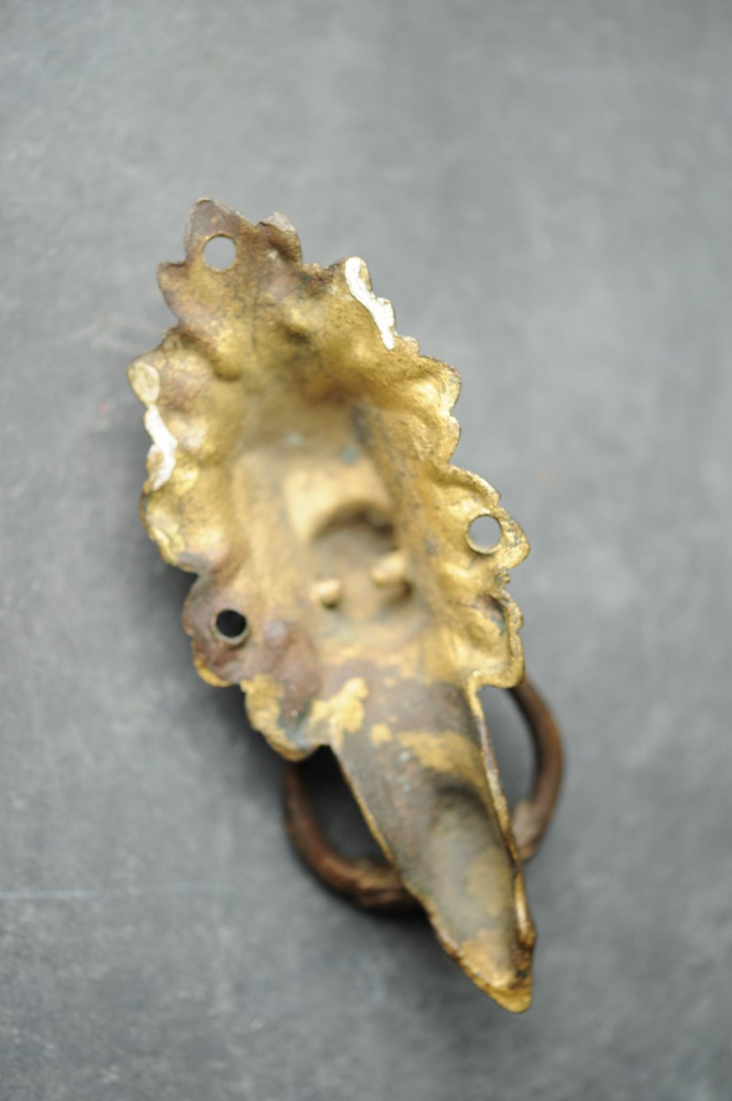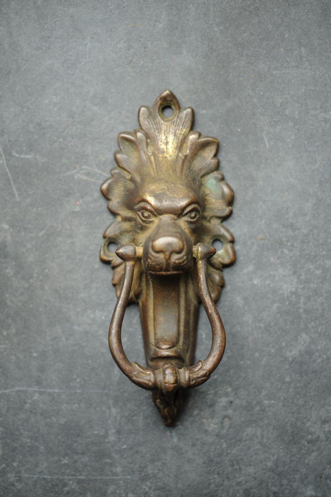 A reclaimed brass door knocker. Height 5.5 inches. Includes delivery UK.