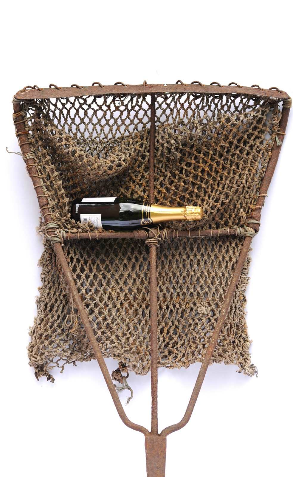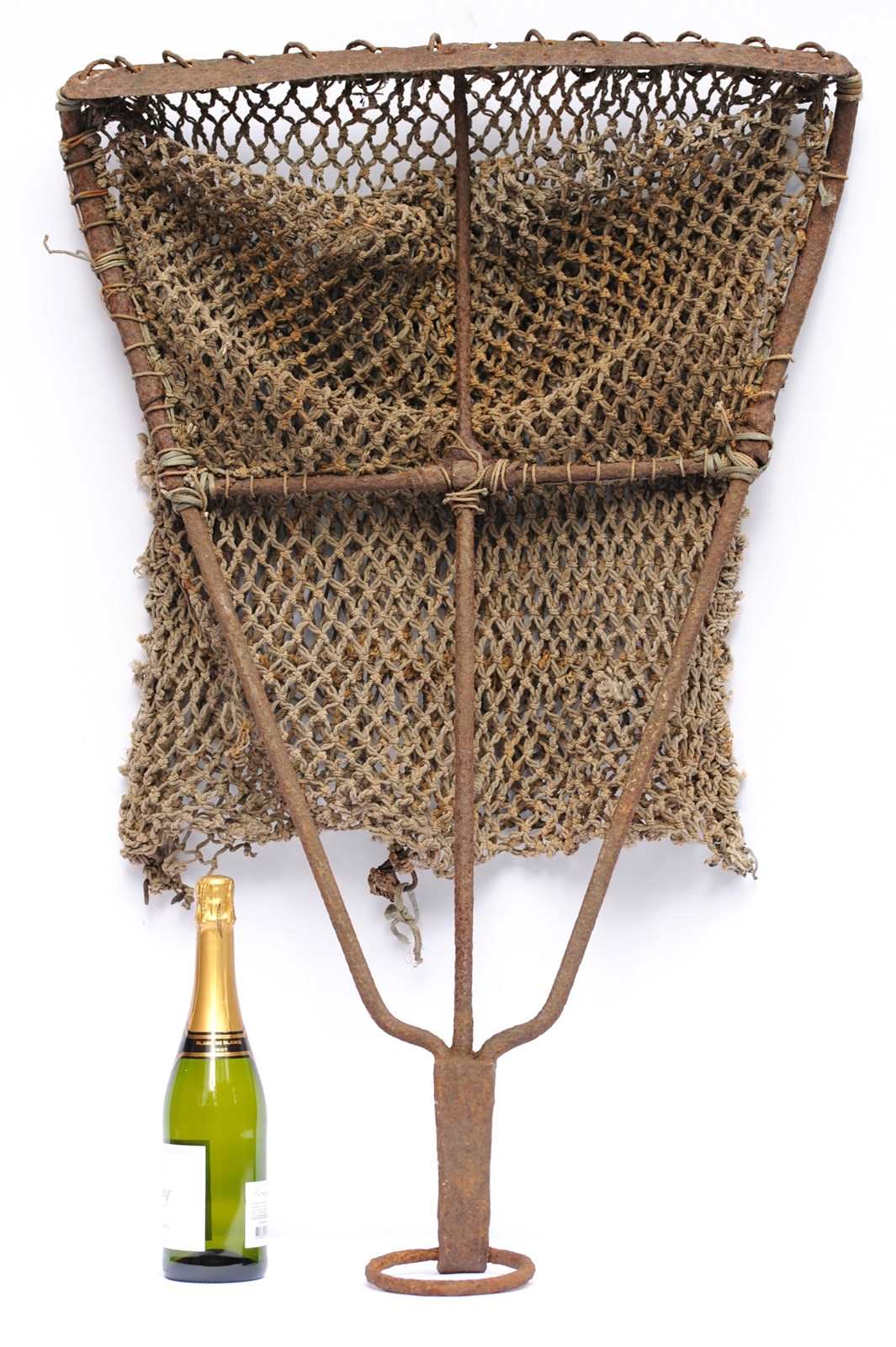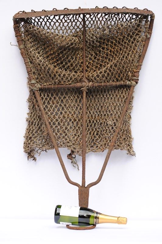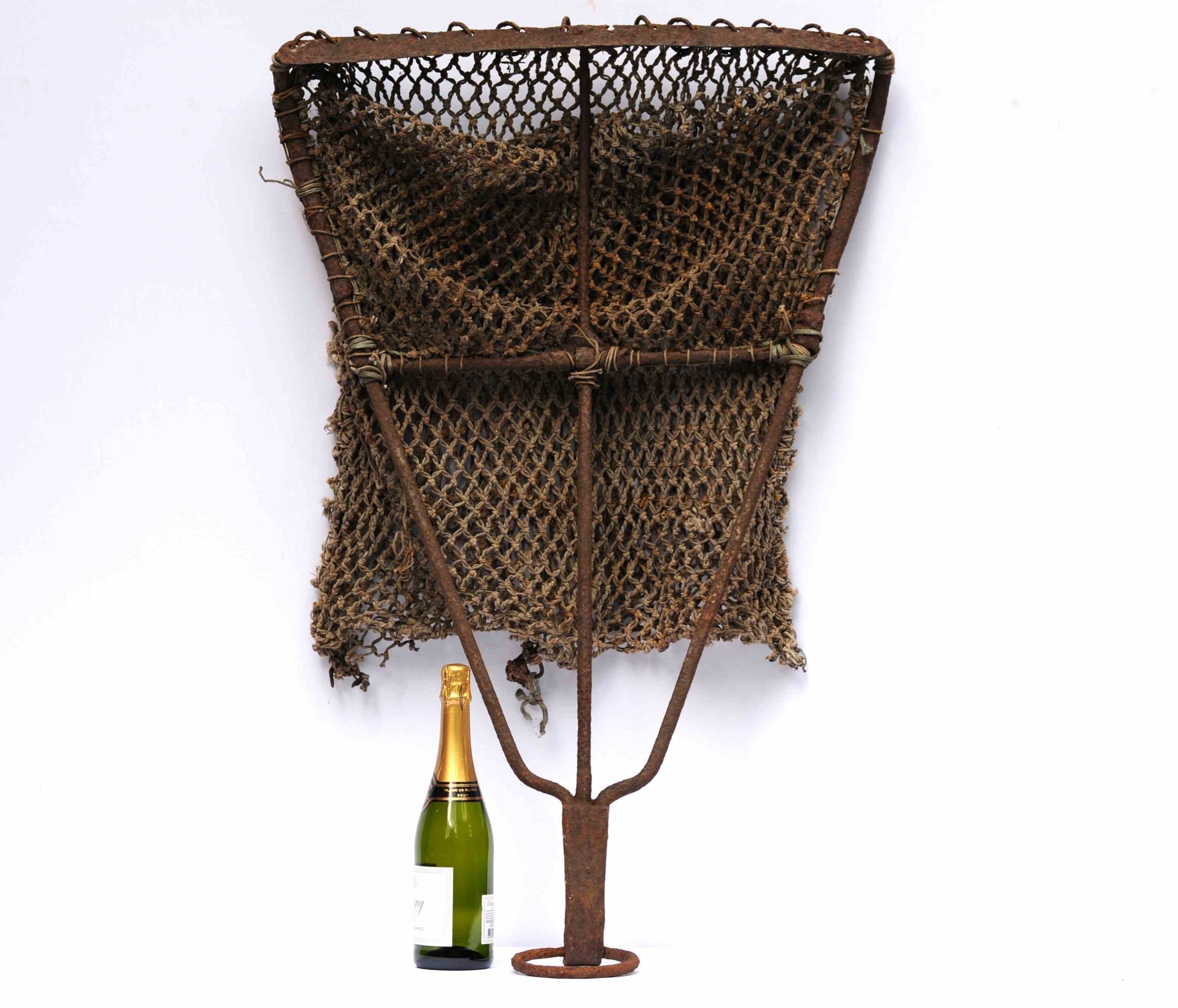 Unusual item to see available & a great interior decorative piece for a restaurant, shop or coastal home, even a garden display piece. An early smithy made wrought ironwork English Scallop dredge. Completely untouched old condition with a wonderful worn coastal look to it. Approximately 1 metre in overall height & 0.7 metres in width. Weighs 9 kg. For a size comparison please view the last five images with a bottle of wine in view. Loads of different points for hanging on a wall, there is even a iron loop at one end. Or it can be displayed simply lent up against a wall. Free UK inland tracked delivery. Any questions about this Early English Scallop dredge please do not hesitate to ask.