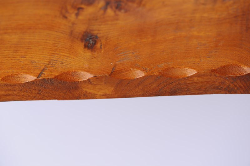 Original Arts & Crafts period Elm small table top with chip carved edges. Varnished to the top side, which you may prefer to strip off? This is just the table top only, no legs or base. It could also be used in the kitchen as a large surface top chopping board? It is in good overall condition. Sale includes delivery within the United Kingdom. Any questions please do not hesitate to ask.