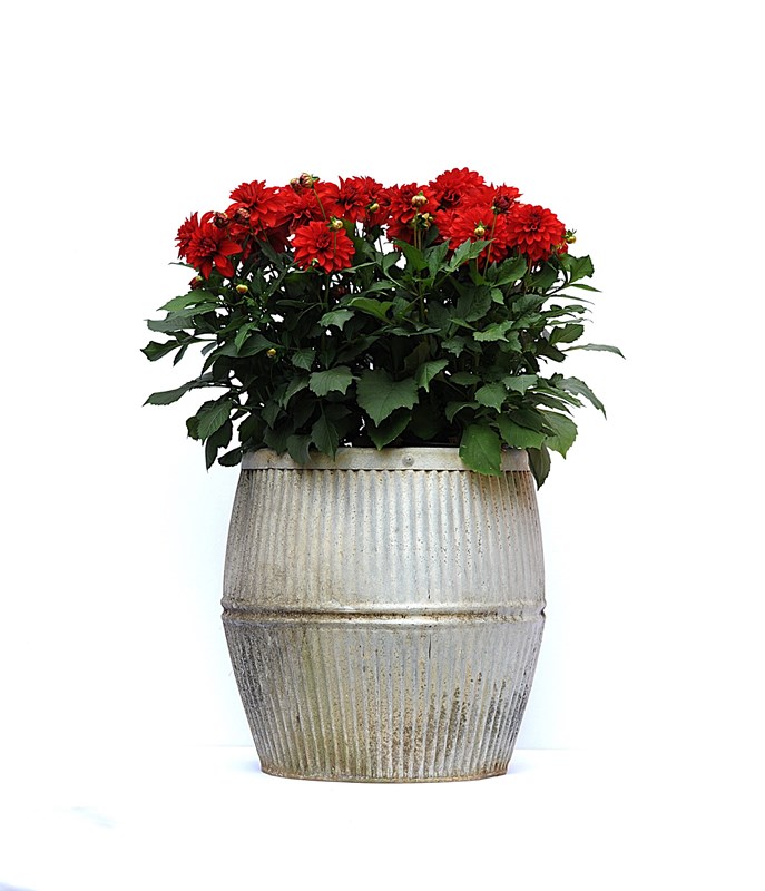 English Dolly Tub Vintage Antique Galvanised Entrance Tree Pots Garden Barrel