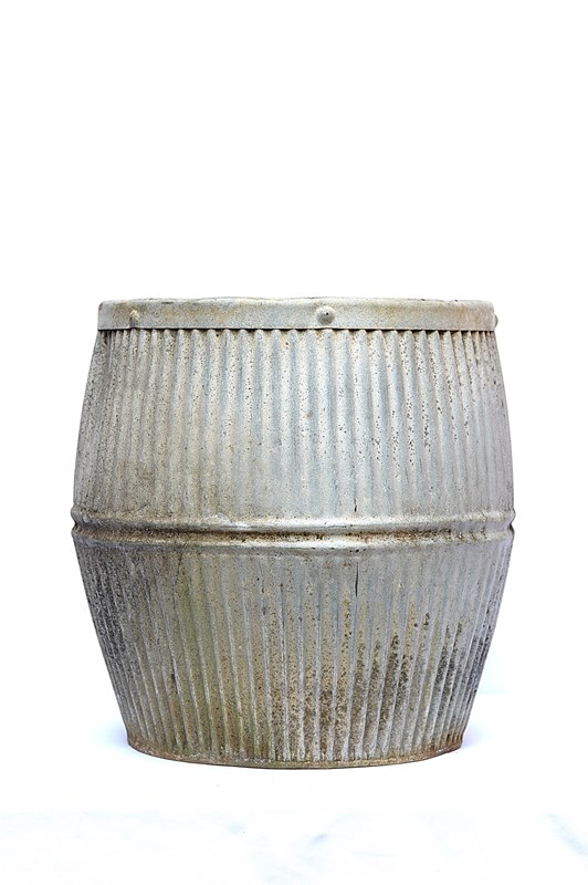 An English 1930s Period Bow Ribbed Galvanised Dolly Tub. Watertight. Approximately 18.5 inches in height, with a top opening diameter of 16 inches, bowing to 18.5 inches in the centre. Good overall original untouched condition. Sale includes UK inland tracked delivery. Returns are happily accepted.