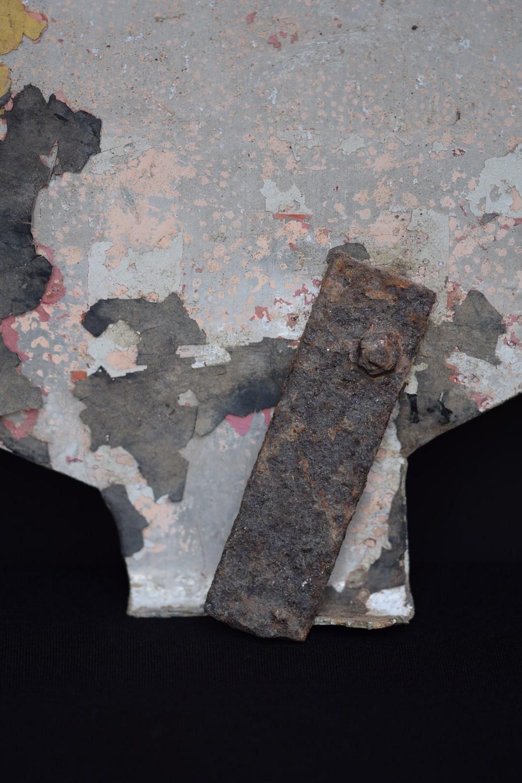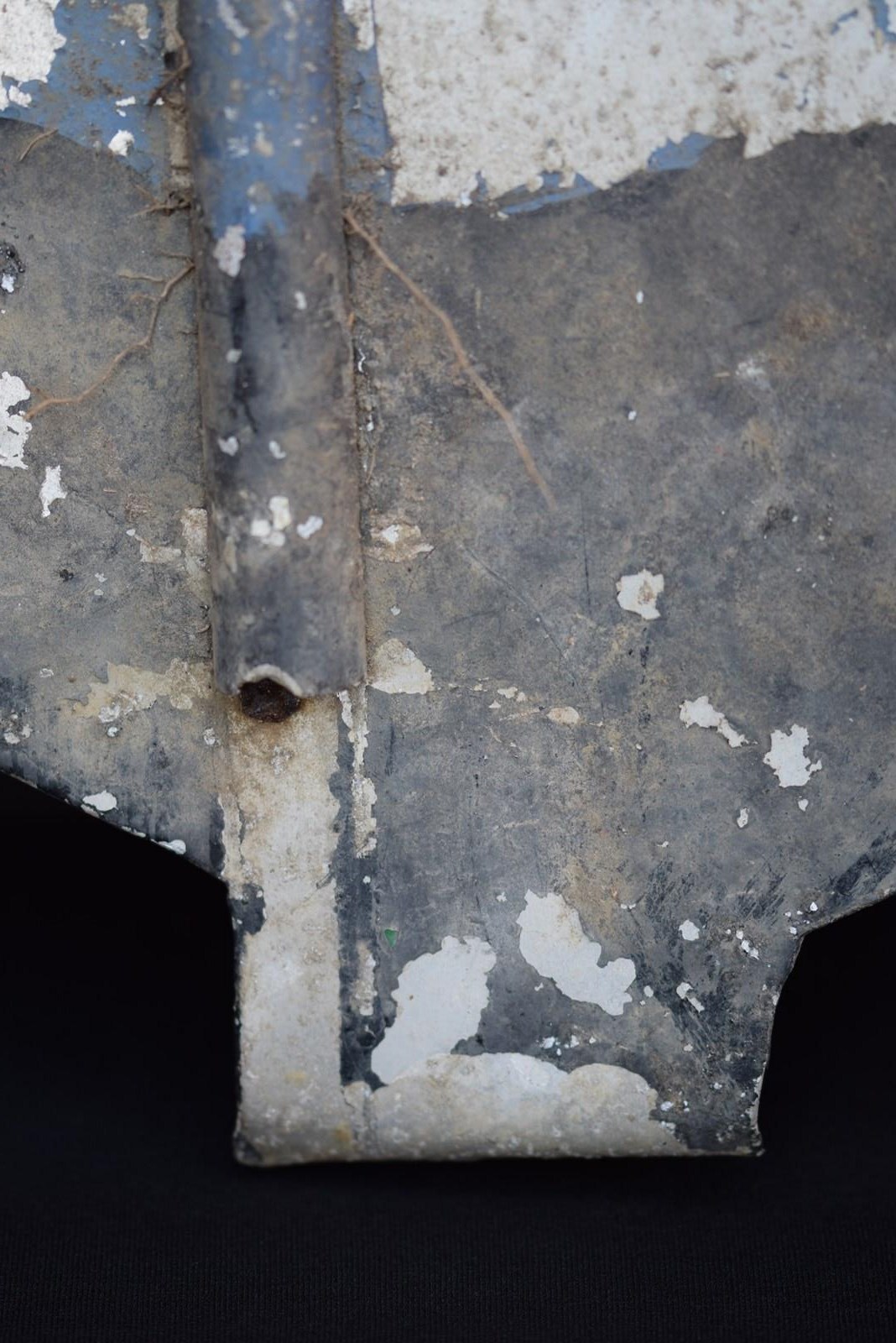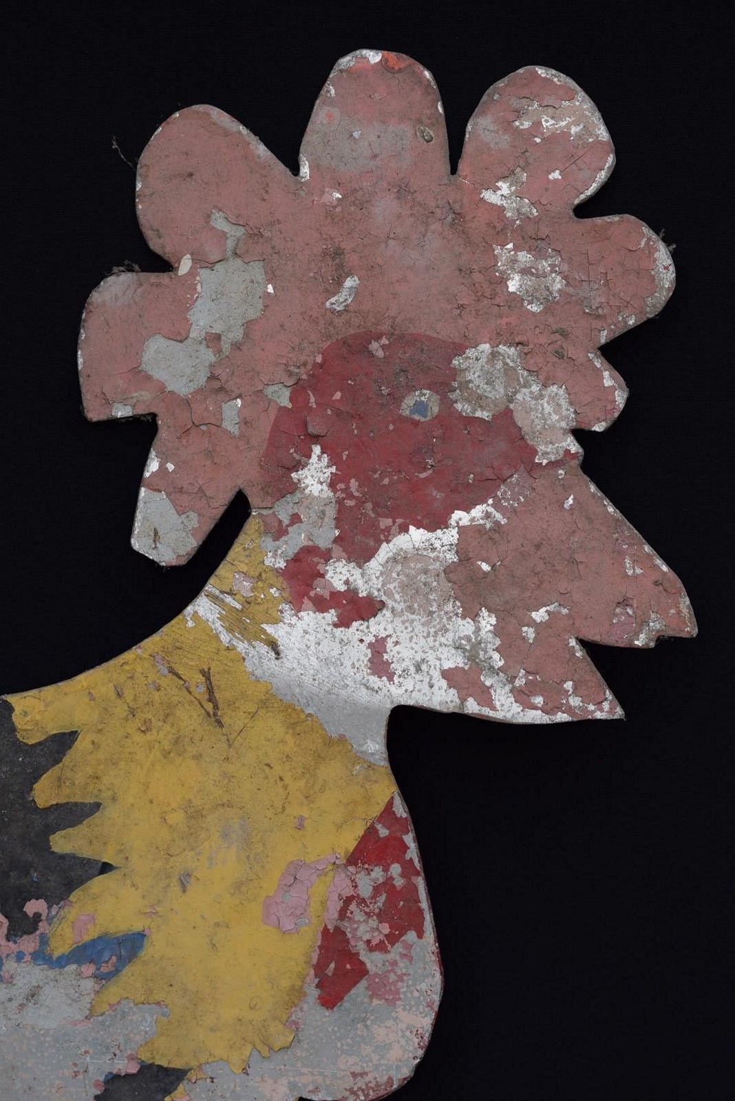 A naive English 1960s period Folk Art metal weather vane top. In old untouched original condition, with marks, knocks, wear, flaky paint etc. Bound to make anyone smile! Could be displayed as is, or hung on a wall, either in the home or out in the garden. Sale includes UK inland tracked delivery. Returns are happily accepted.