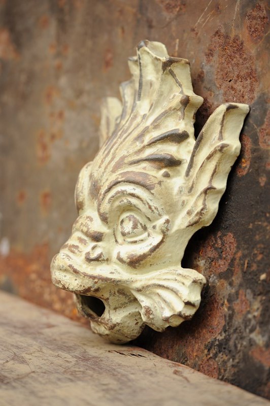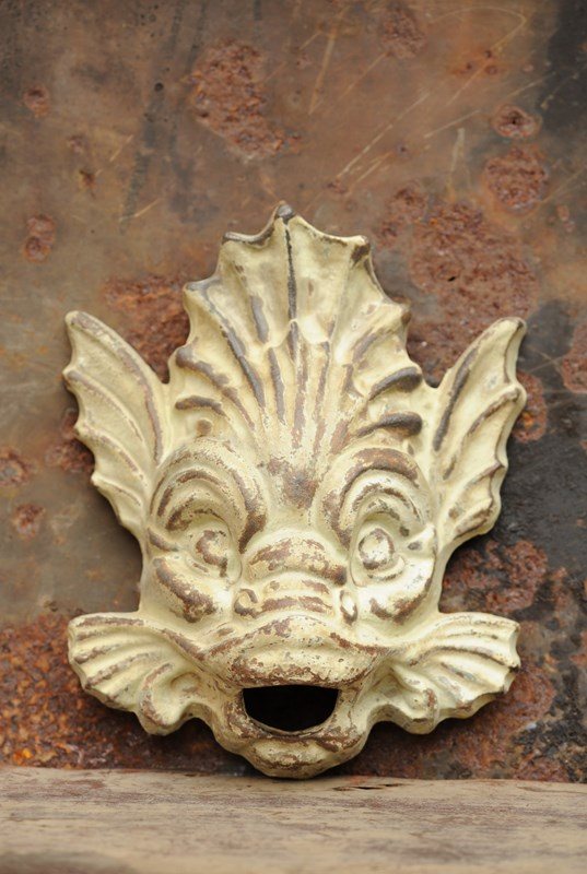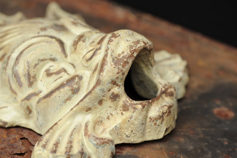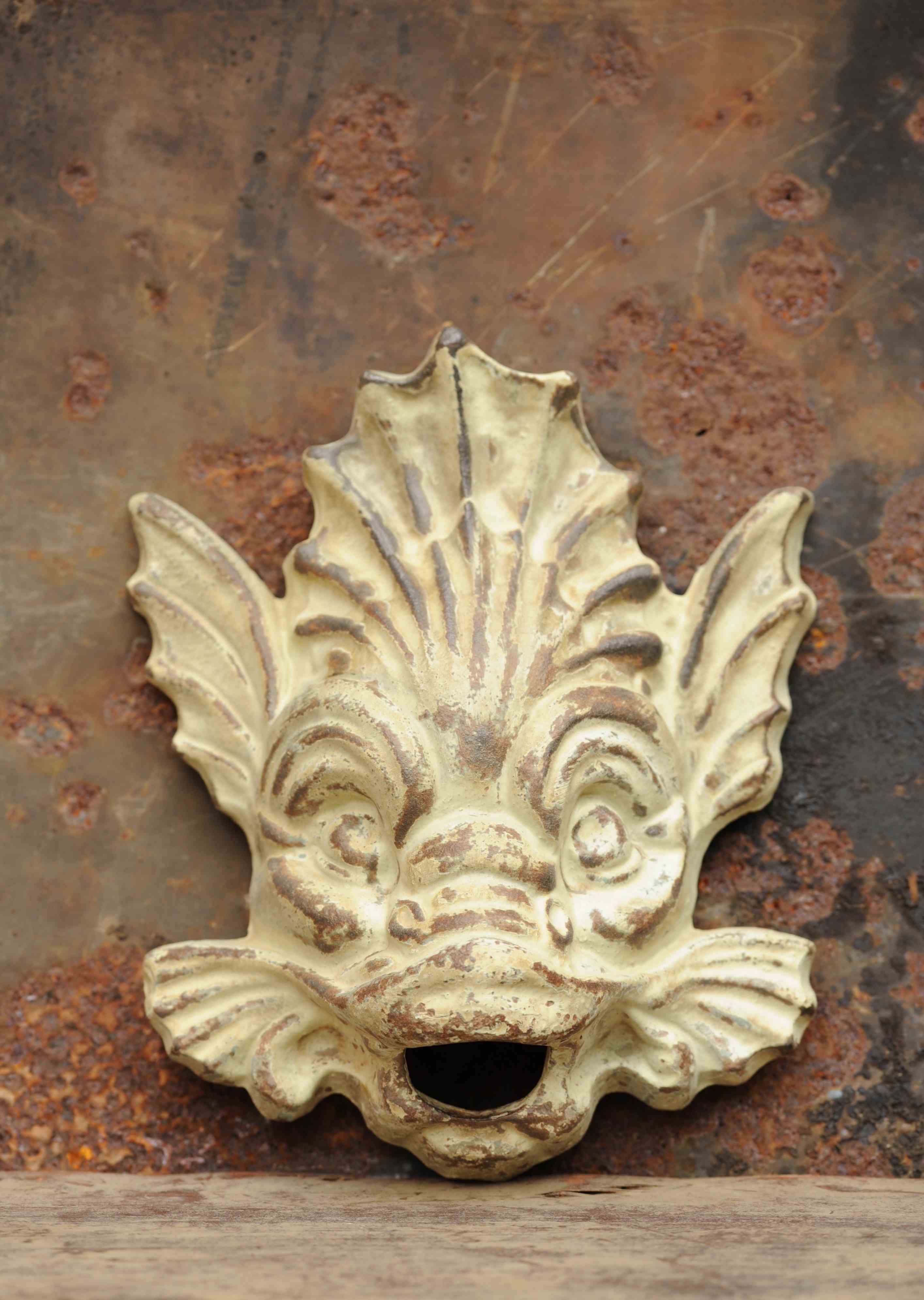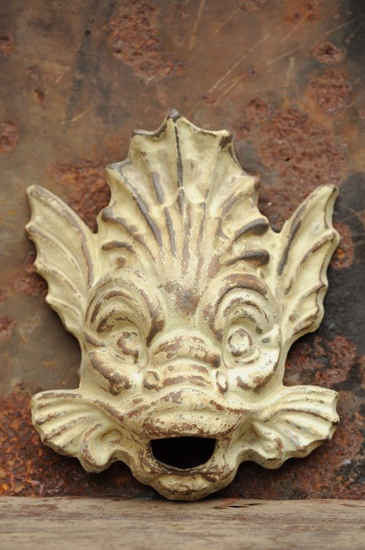 Reclaimed cast iron fountain head, early 1900s in date. Overpainted at some point, worn areas now. Good size at approximately 11 inches x 9 inches. Outlet 1.5 inches diameter. Weight 5 kg. Fixing point at the top rear. Good overall condition. Sale includes UK delivery.