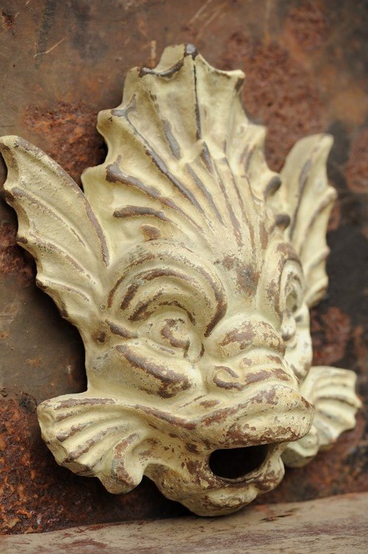 Fountain Head Cast Iron Water Feature Spout Reclaimed Antique Garden Dolphin