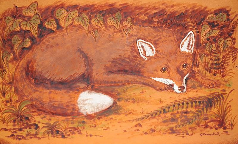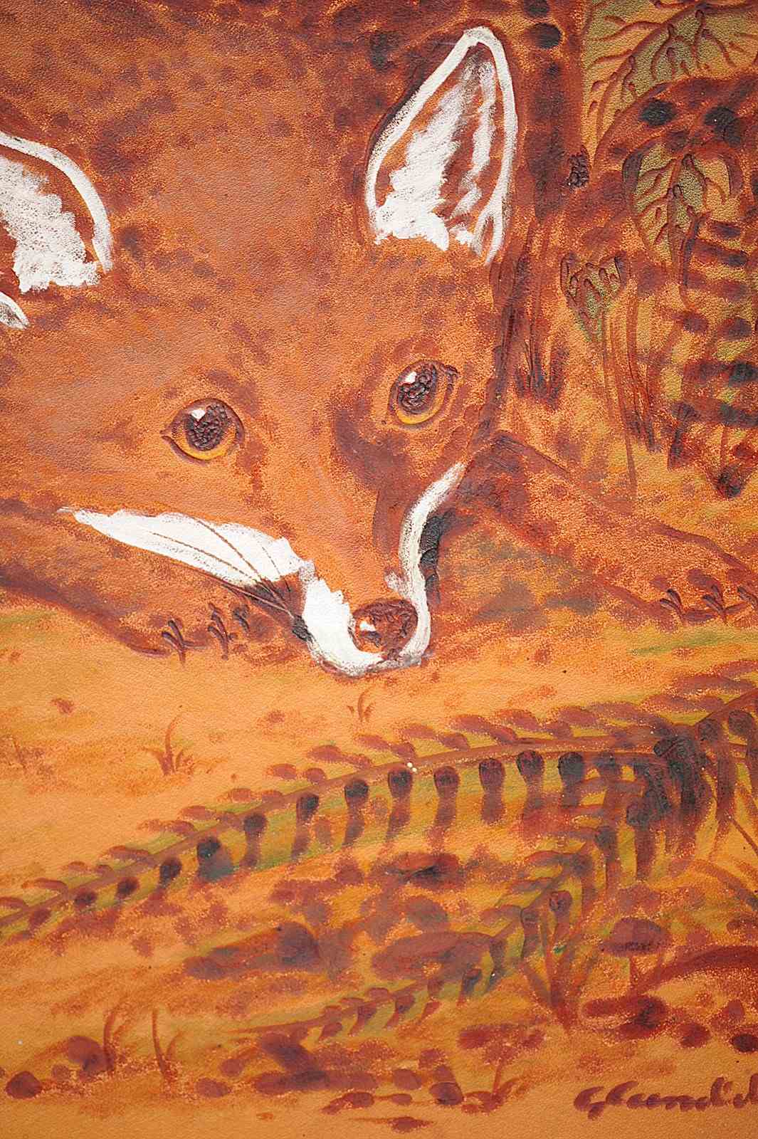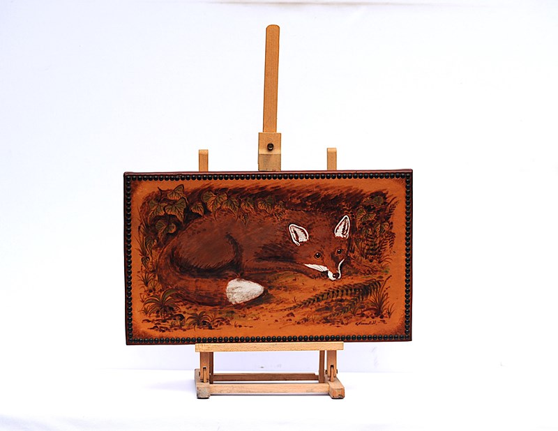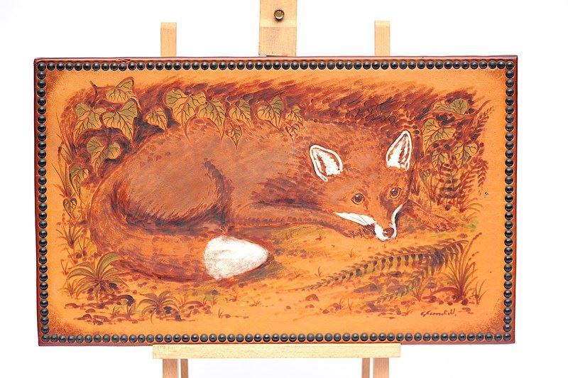 Fox Pokerwork Picture George Cundill Folk Art Painting Wildlife Leather Wall Art