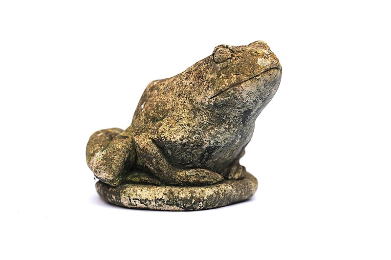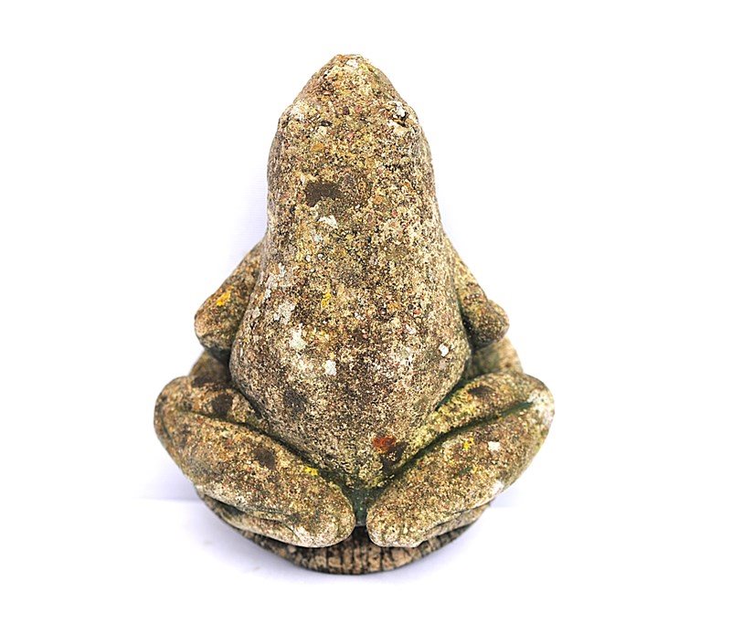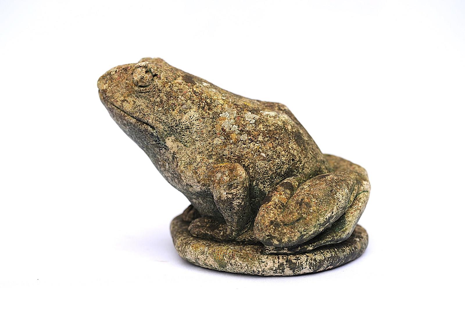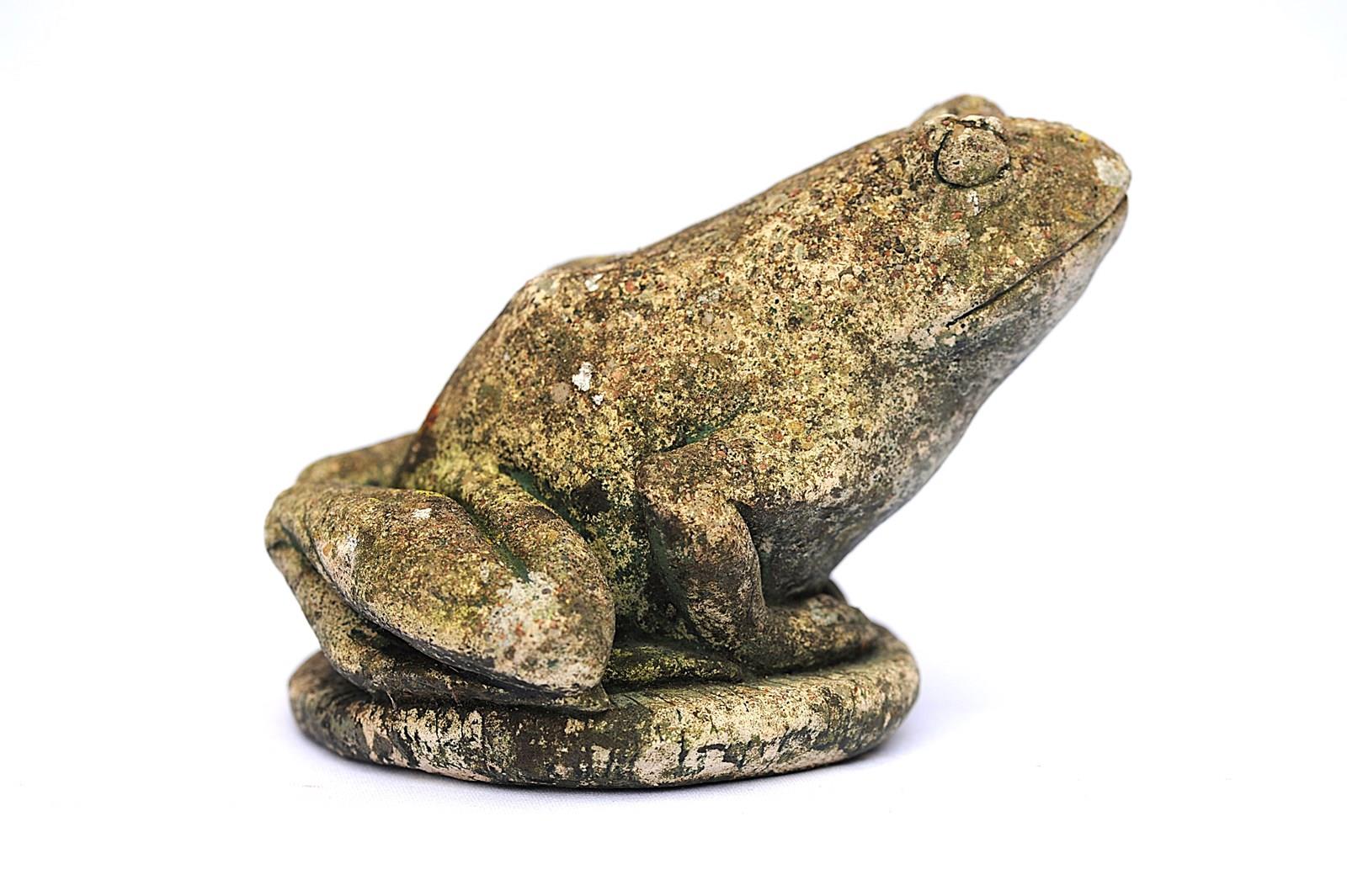 Vintage cast stone study of a Frog. Nicely weathered & garden time worn. Good overall condition. Height 5 inches. Weight 2 kg. Price includes delivery within the United Kingdom.