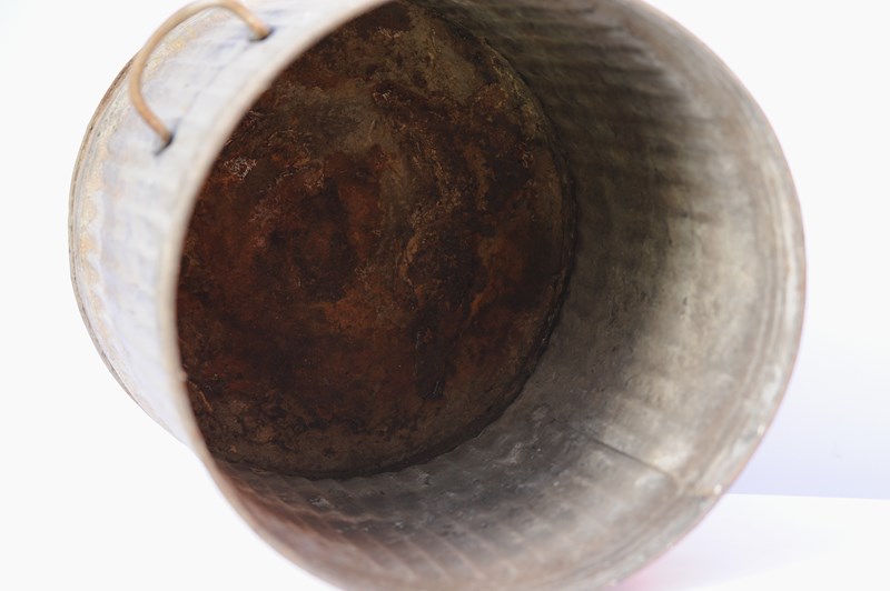 Galvanised Bin Or Planter Old Vintage Riveted Handle Garden Pot Storage Mid 20Th