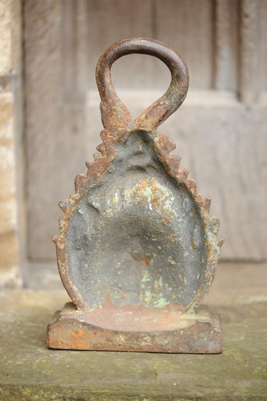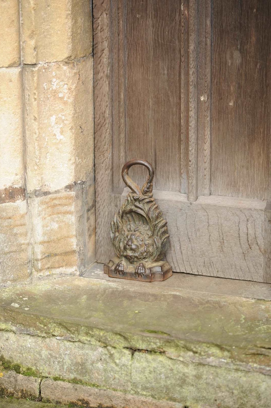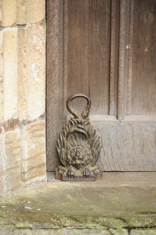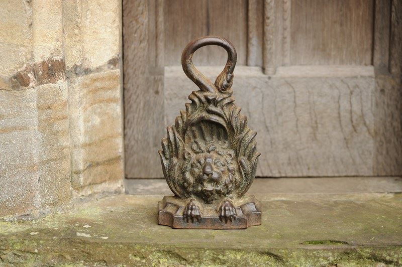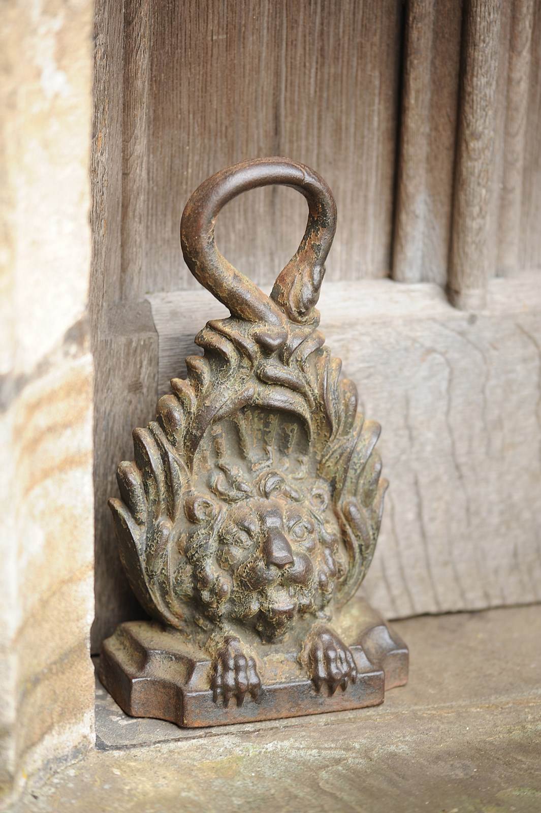 A wonderful English late Georgian period cast iron door stop or porter. Height one foot. Weight 5.5 kg. Depicting a Lion suddenly emerging from cover with its curled tail rising above acting as the door stop handle. In good completely untouched original condition with remnants of early paint work. Well cast with good detailing & a sense of movement. Displays beautifully. A joy to own, use & enjoy. Sale includes delivery within the United Kingdom.
