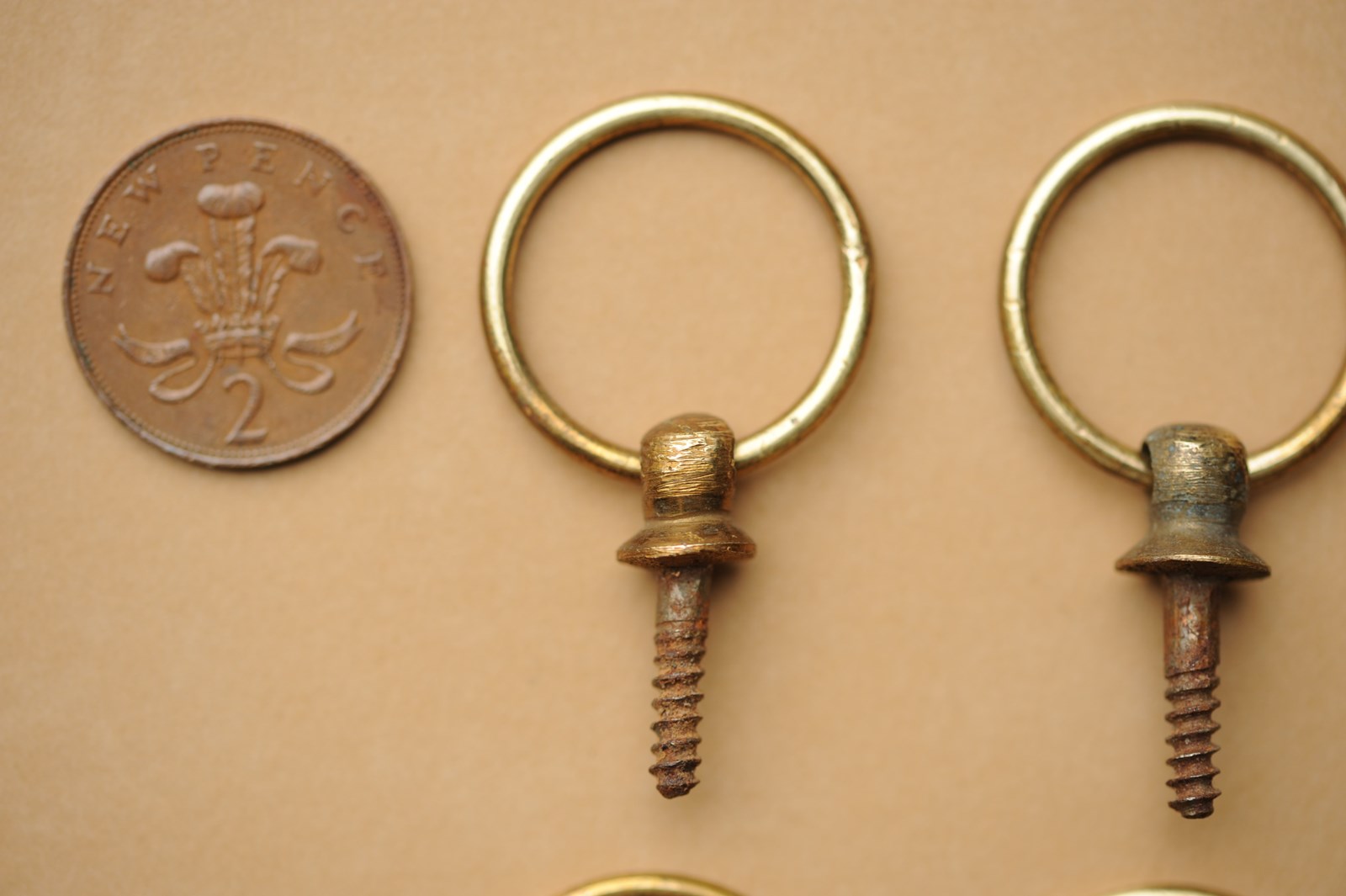 A collection of Six English Georgian late 18th century picture frame hanging hoops or hooks. Scarce to find, especially when you need them! Brass & iron construction, please see the last image for a rough size comparison. All in good condition. Any questions please do not hesitate to ask. Sale includes delivery within the United Kingdom.