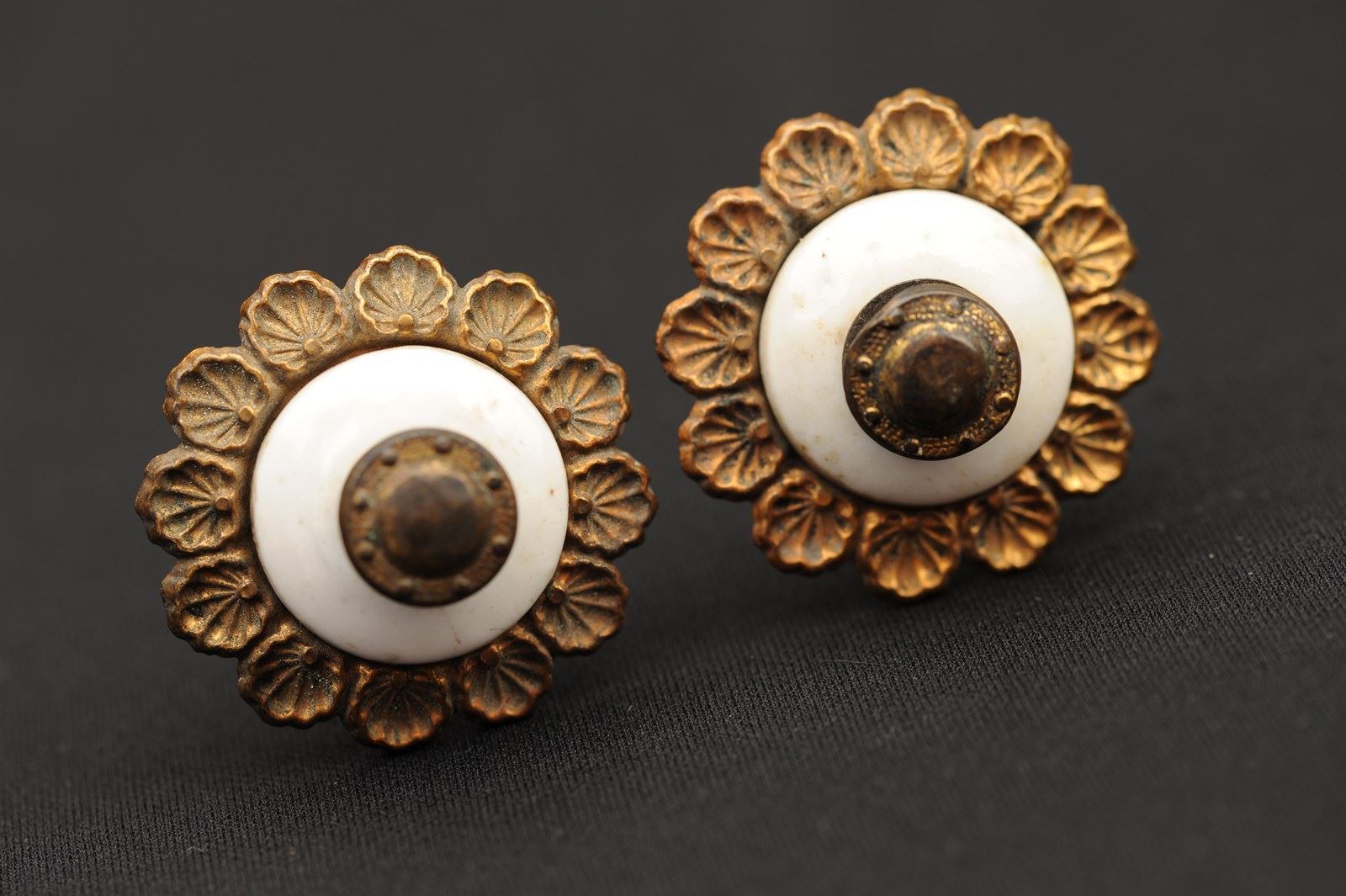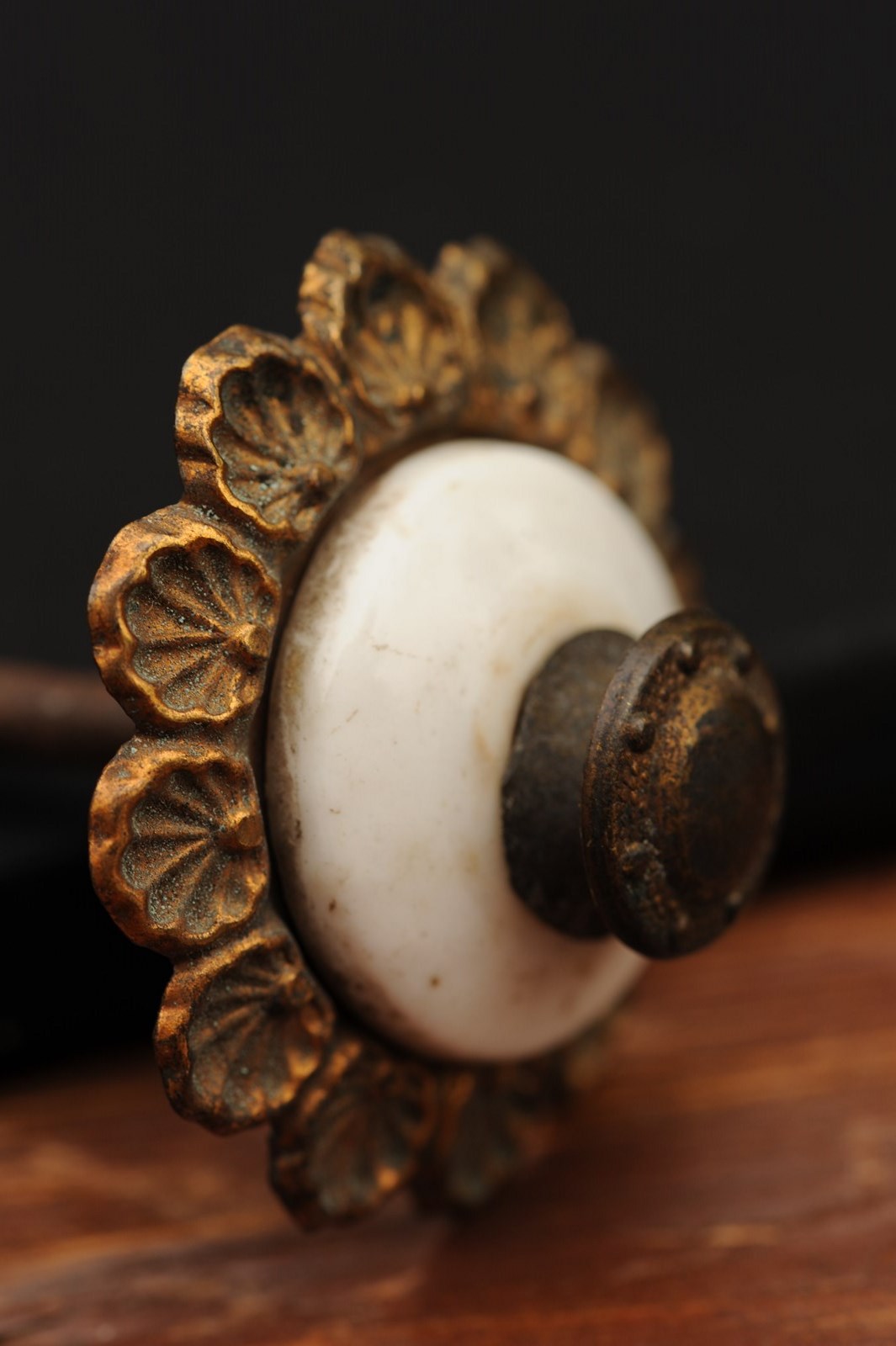 Victorian Picture Nails Frame Hooks Brass Porcelain 19Th C Antique Painting Hook