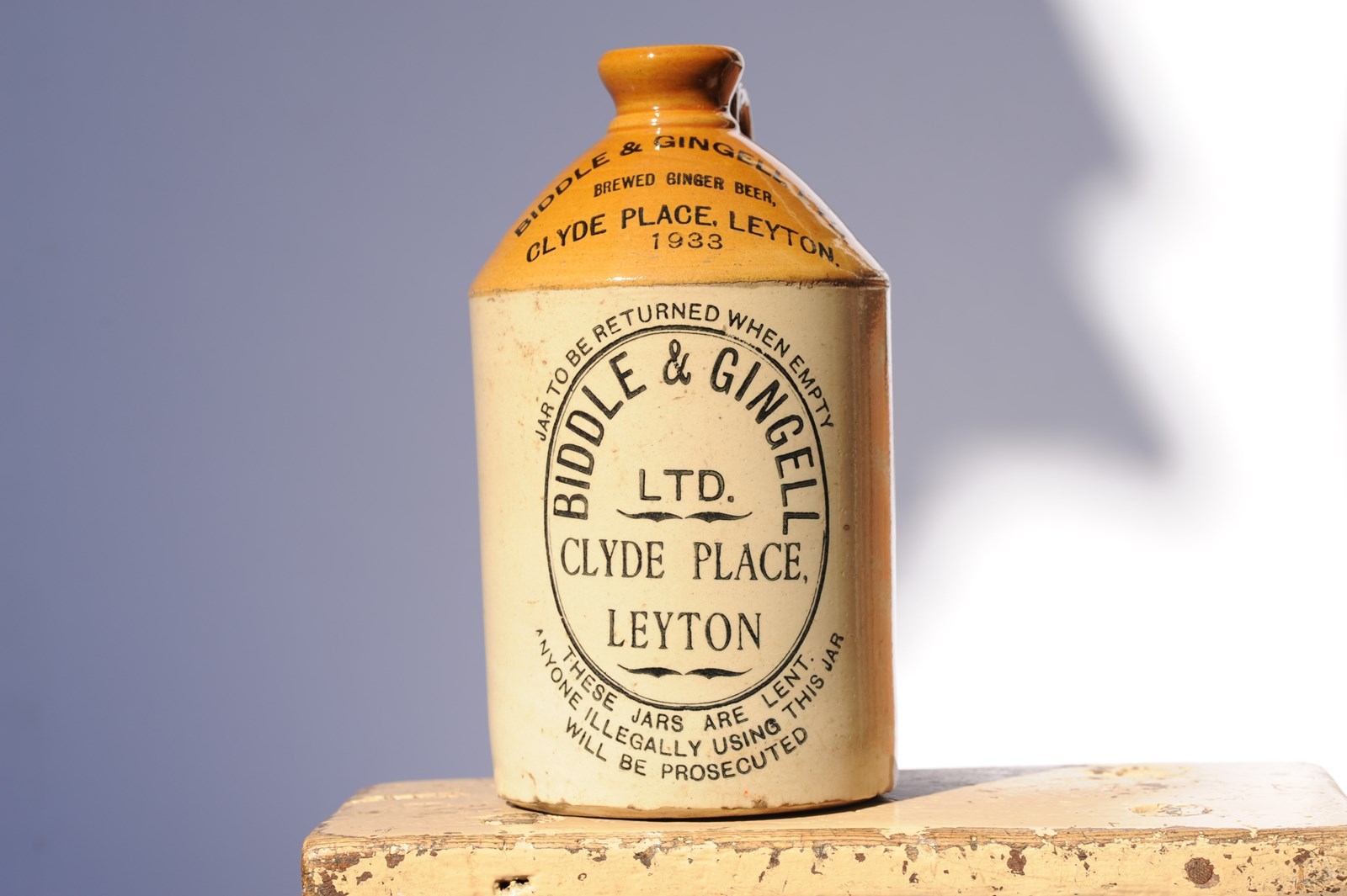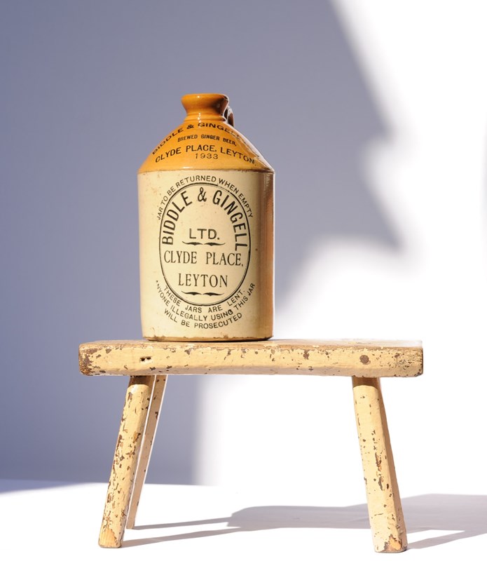 Ginger Beer Flagon 1933 Biddle & Gingell Leyton Vintage Ale Antique Pub Shop Bar