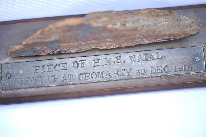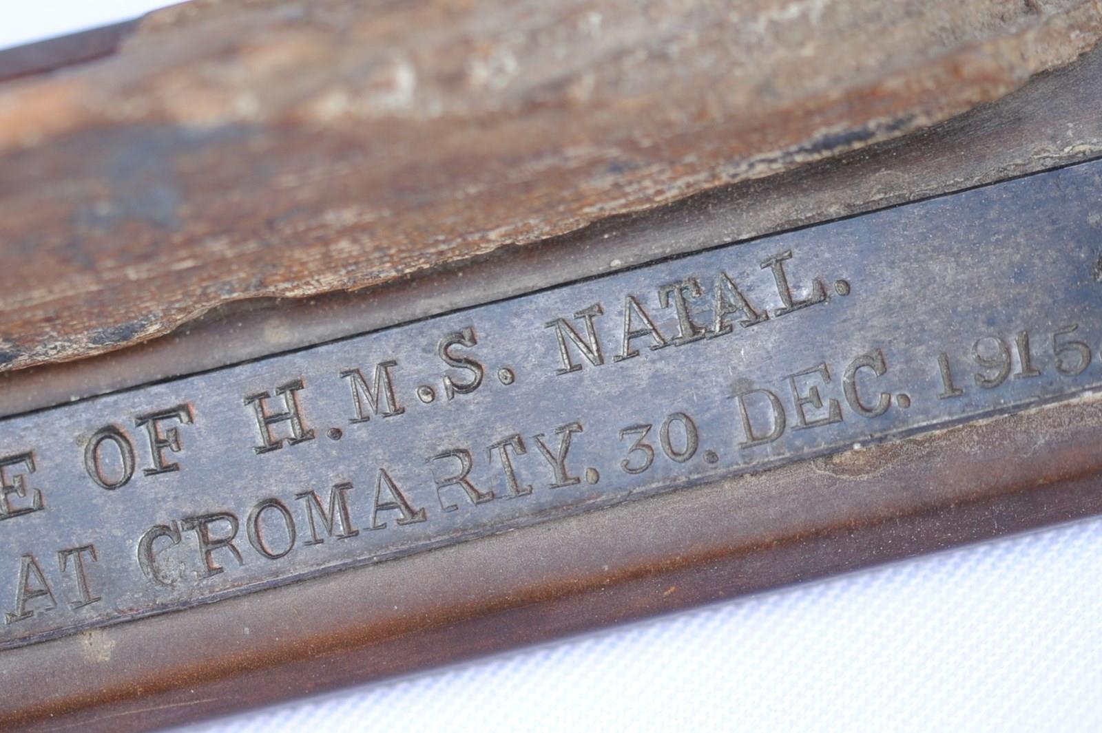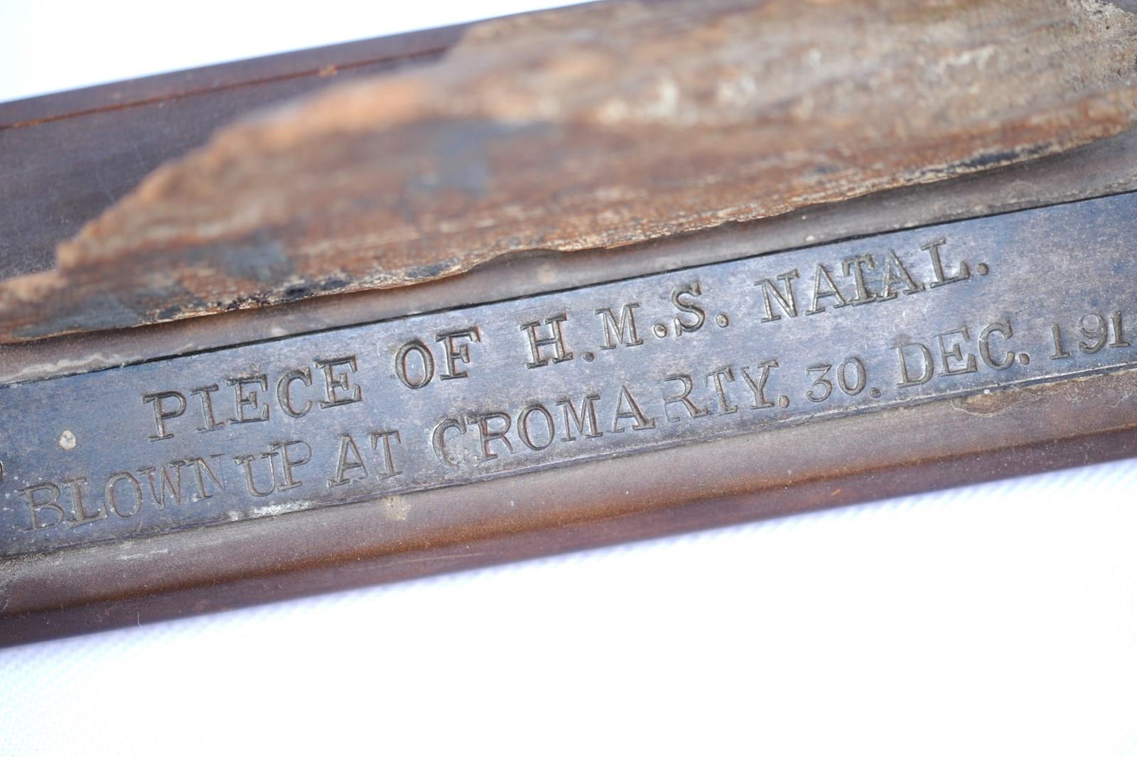 1915 H.M.S Natal Fragment 30 December Cromarty Scotland Timber Wood Desk Display