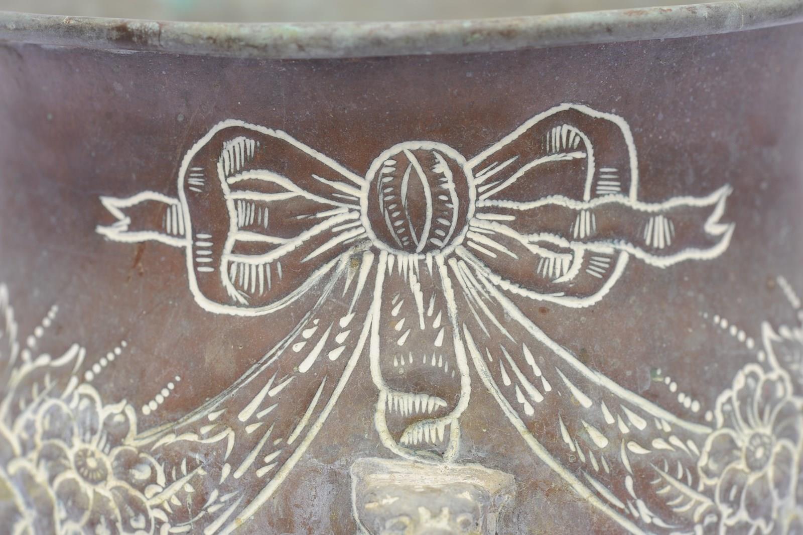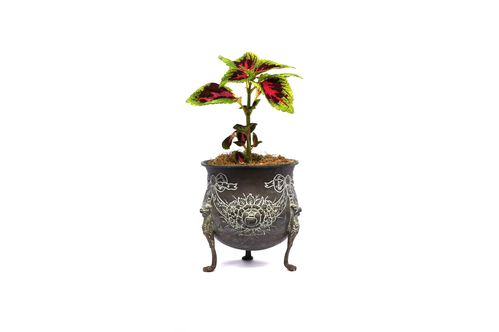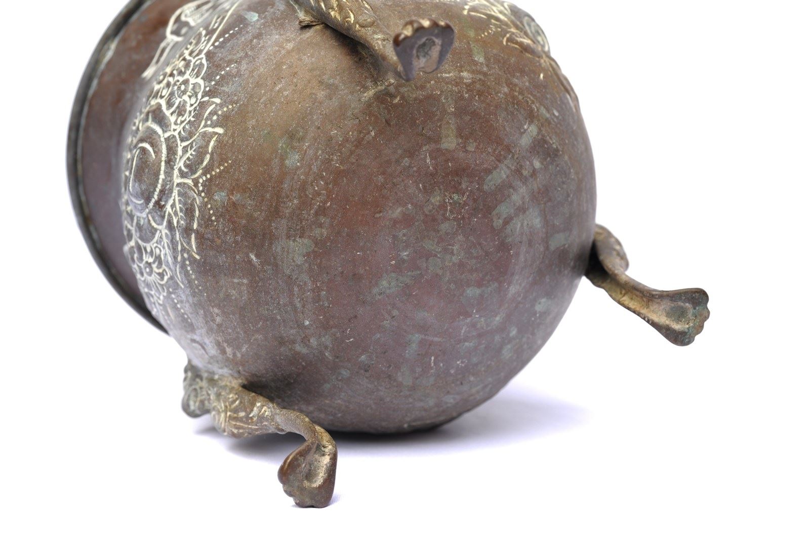 A beautiful untouched dinanderie indoor planter. Dates to around c1920. Hand embossed copper body with with three solid brass lion & paw standing feet. It has clearly never been polished, which we love! The subsequent time aged patina it now carries is so lovely. It is watertight so quite usable for its intended purpose. It will hold around 3 litres of compost. Good overall completely untouched original usable condition. Sale includes UK inland tracked delivery. Returns are happily accepted.