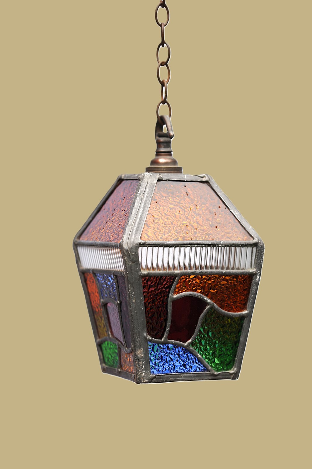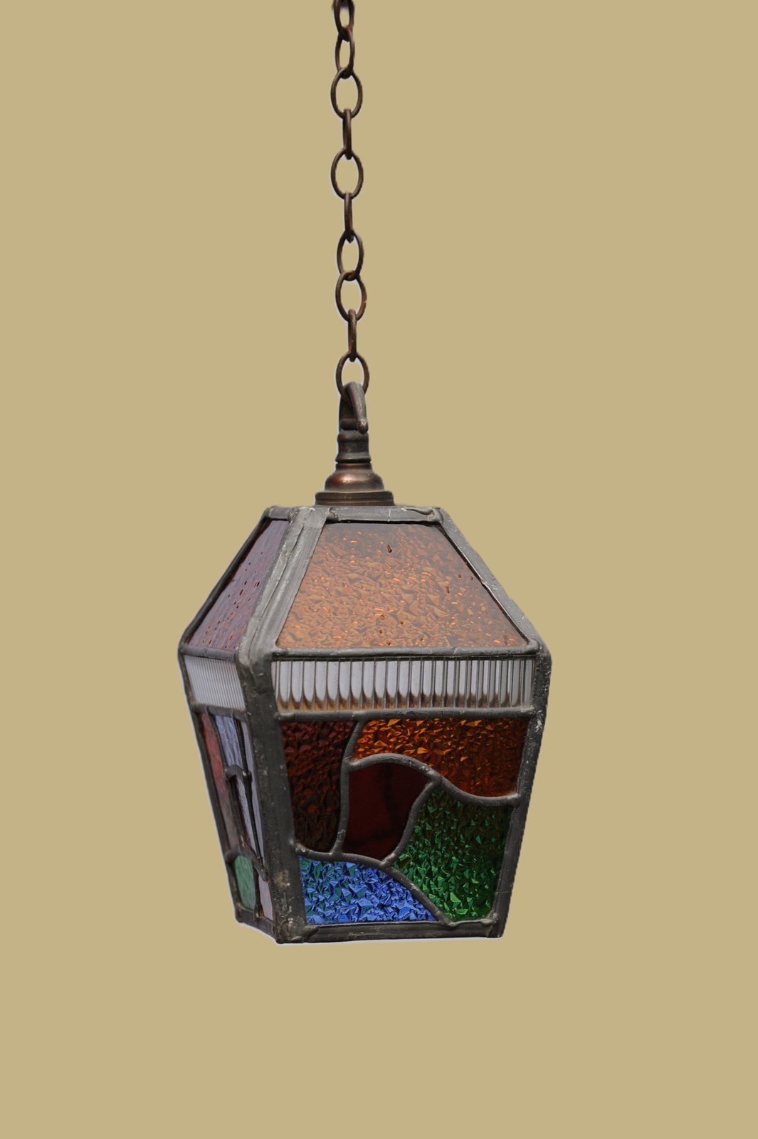 Lead & Stained Glass Porch Lantern Antique Light Lamp Lighting Garden Interior