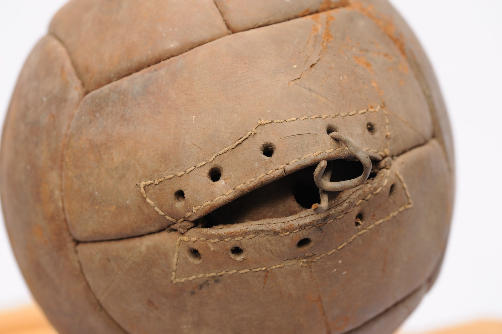 There is never a huge number of these original English leather footballs out there to find & buy. This one's great in its original completely untouched condition. English made & dating to the 1930s period. It measures approximately 24 inches in circumference. Great look to it as is. Sale includes UK inland tracked delivery.