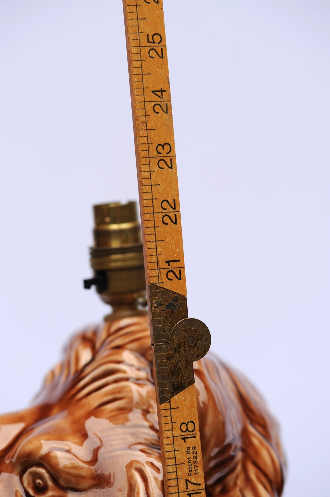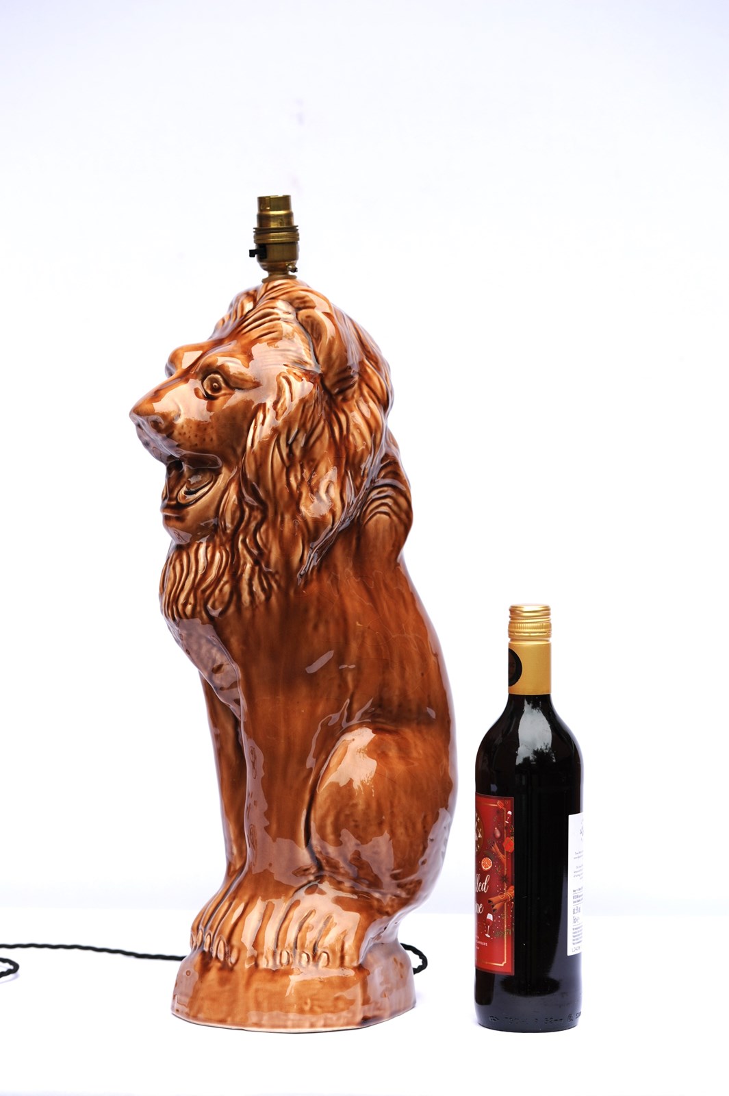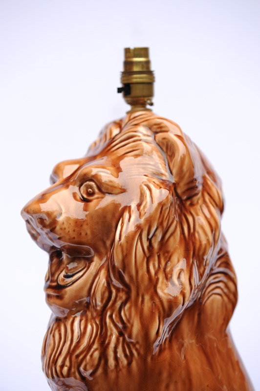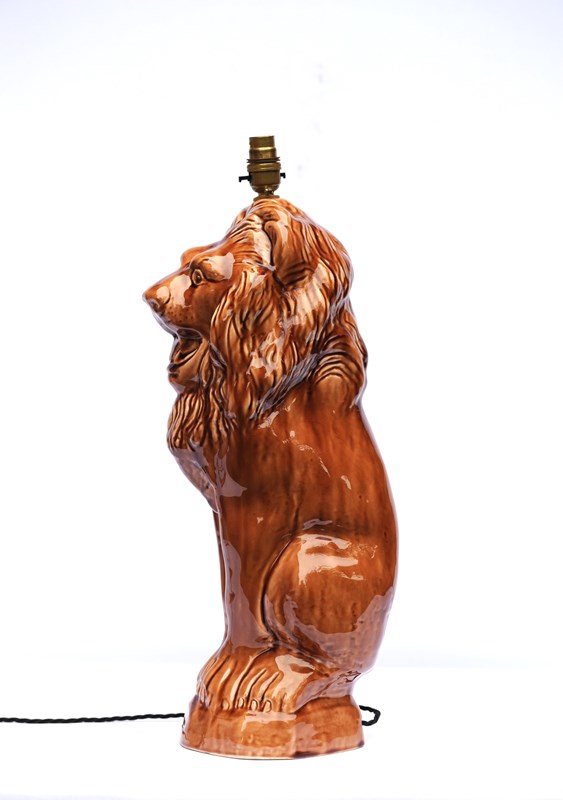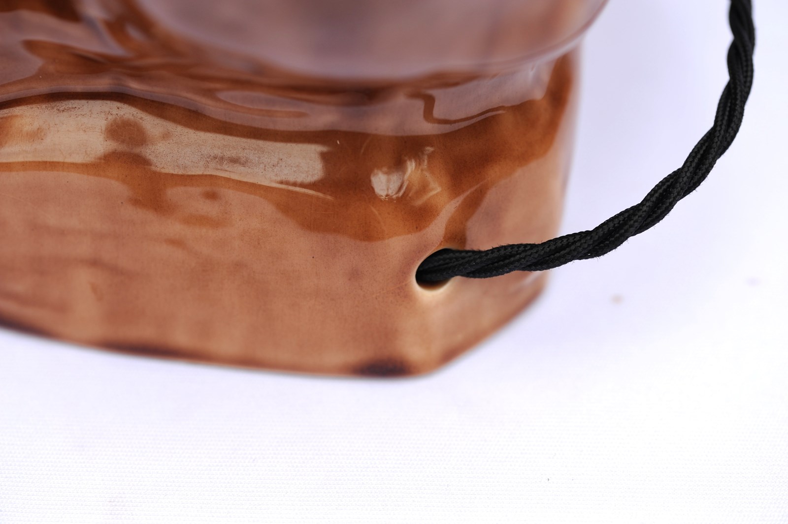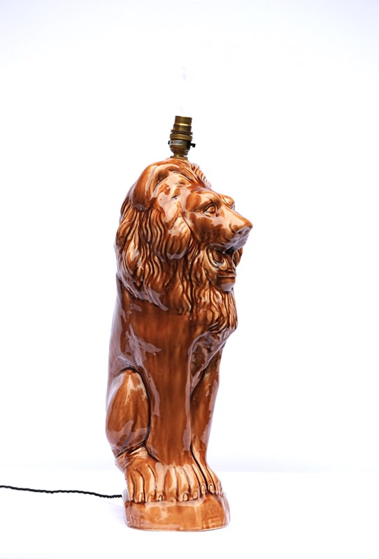 In a warm rich brown glaze, this ceramic lion floor lamp definitely has a look to it. It stands at just under two foot in height. It is a purpose made lamp, rather than a converted ornament. The lady we bought it from told us she picked it up in the 1960s on the Isle of Wight. We have just rewired it in black fabric covered flex & tested. The flex is 2.5 metres in length. Hollow form ceramic. Good condition. No shade supplied with it. Sale includes UK inland tracked delivery.