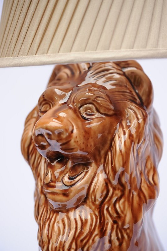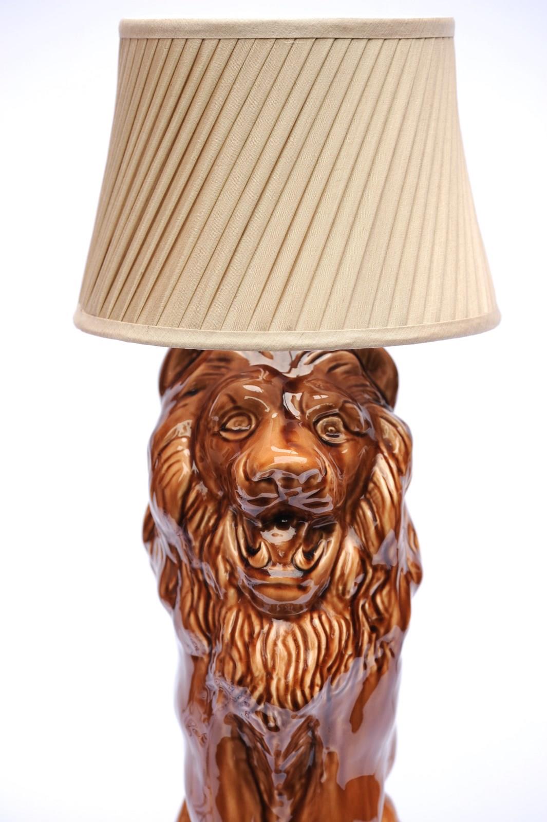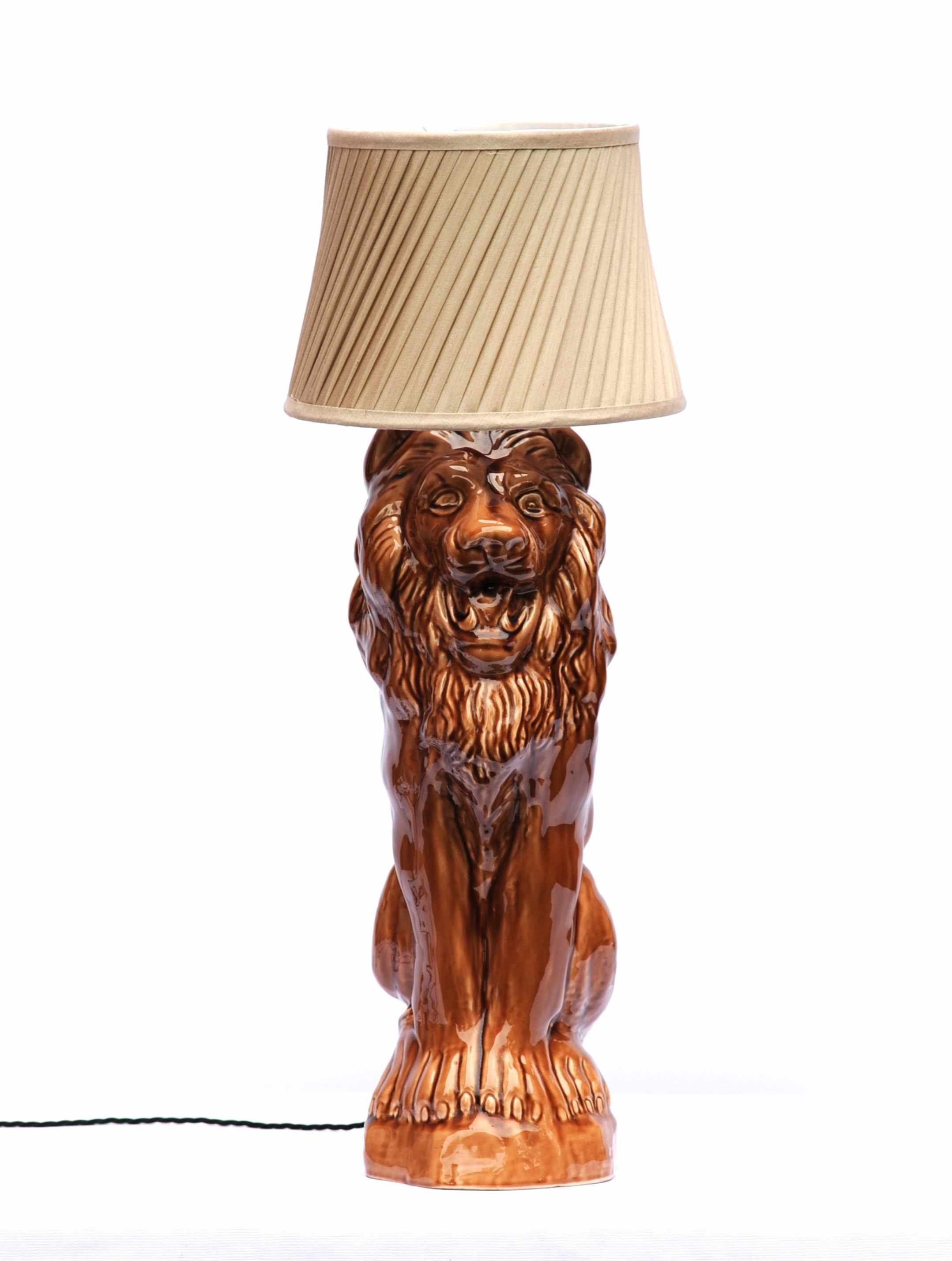 Lion Floor Lamp Side Light Vintage Mid Century Lighting Cat Ceramic Art Table