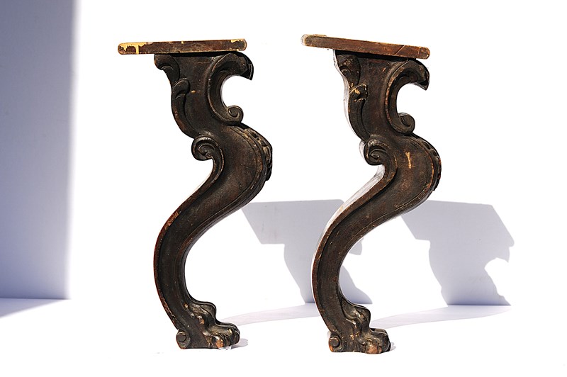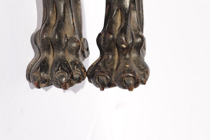 Lion Paw & Claw Legs Antique Carved Wooden Leg Pair