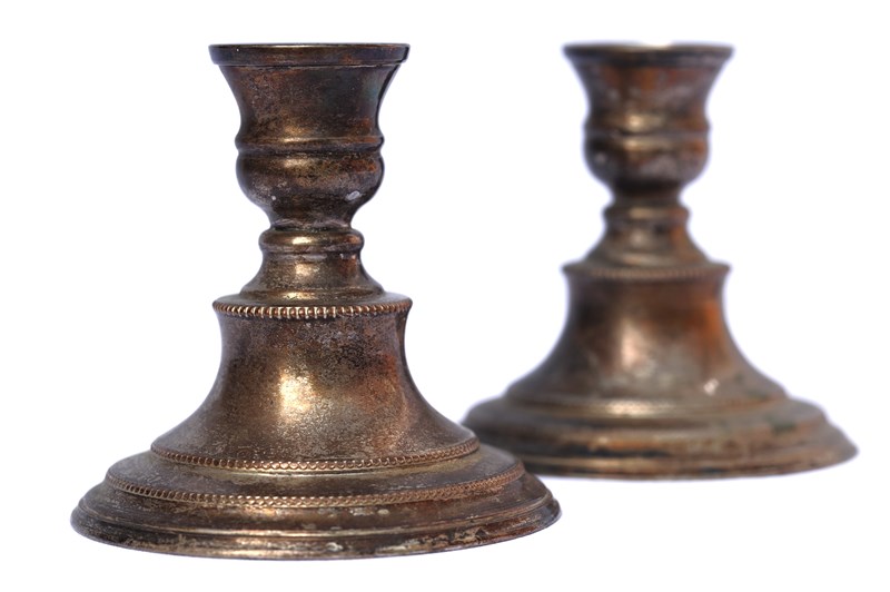 Low Silver Plate Candlesticks Pair Of Vintage Candle Stick Old Table Lighting