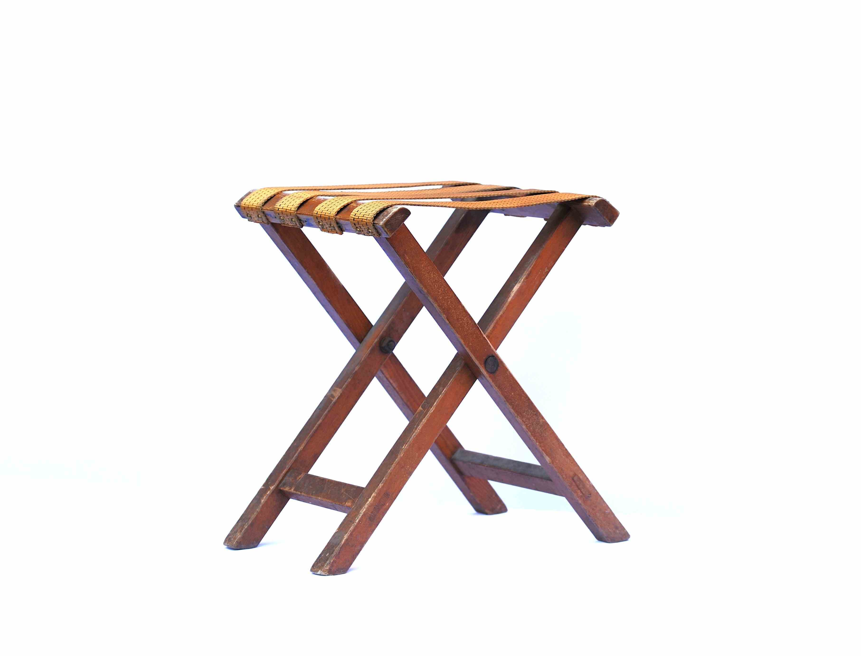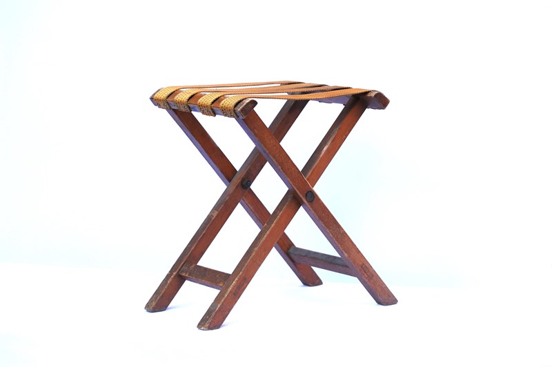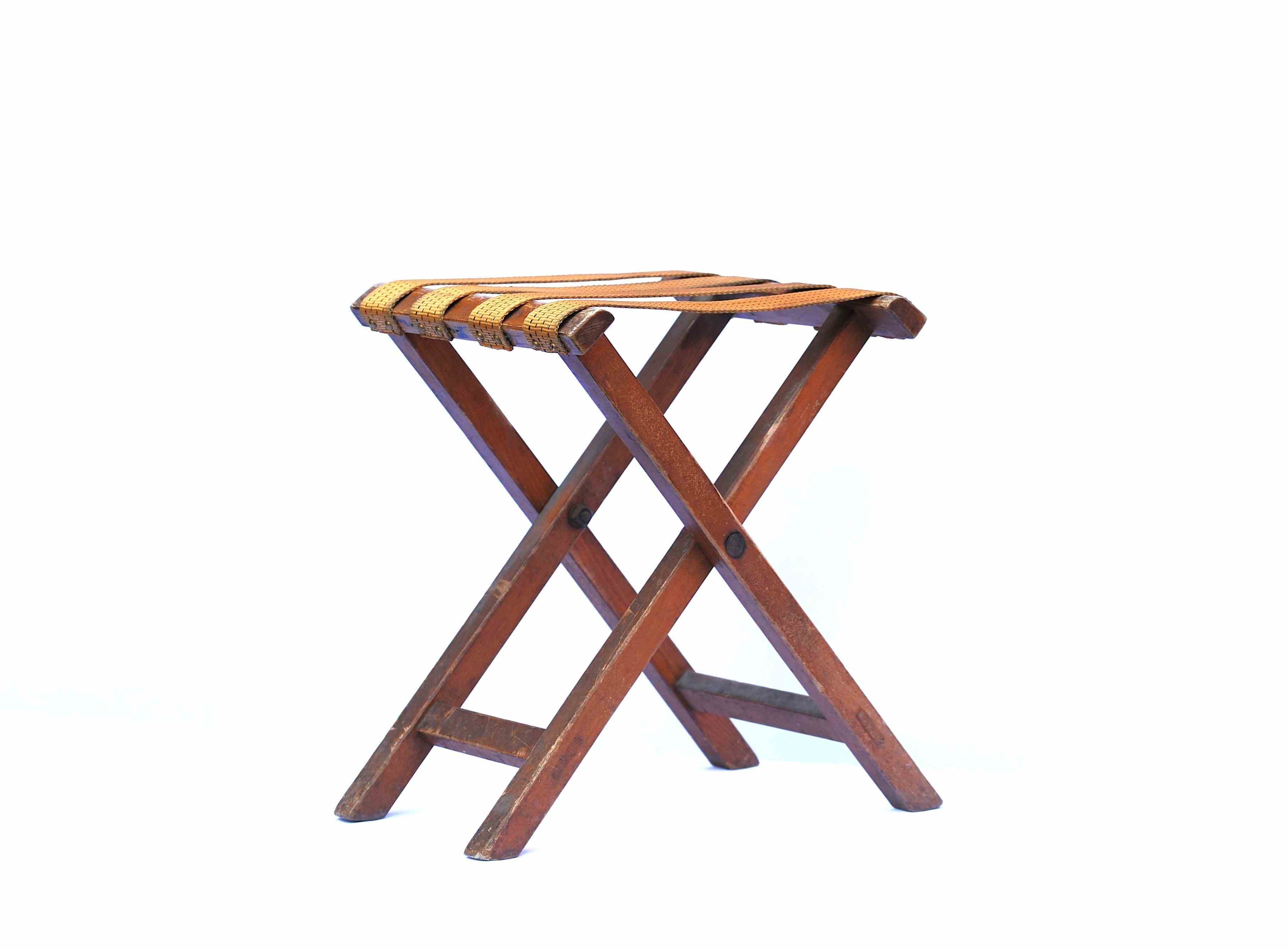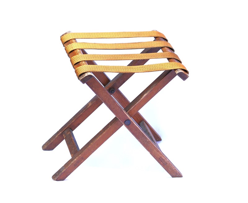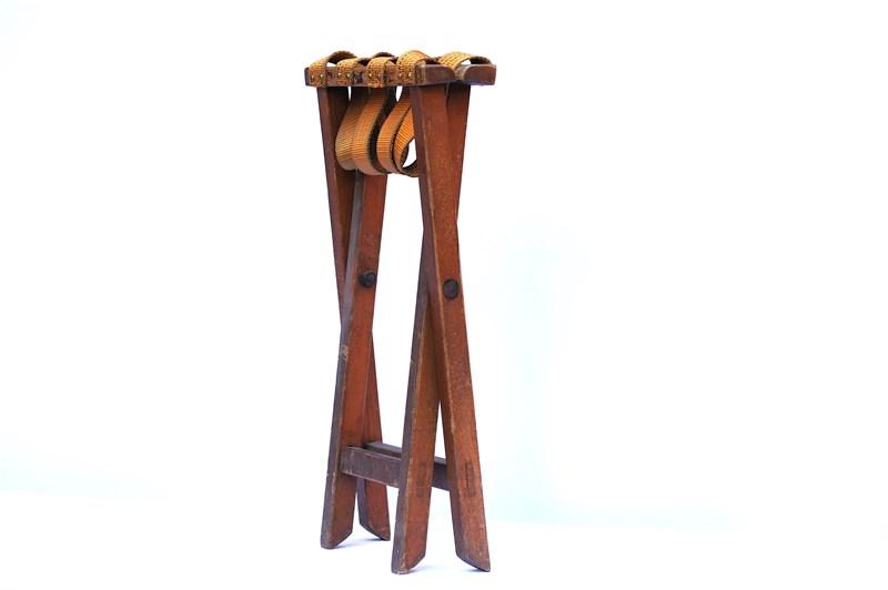 A good vintage folding Ash wood luggage stand with golden webbing. Strong & sturdy. Appears to have been re-webbed several times in its life time, current webbing is good. Size when in use 20" High 17" Wide 14" Depth. Good look of age to it. Ready for immediate use. Sale includes UK inland tracked delivery.