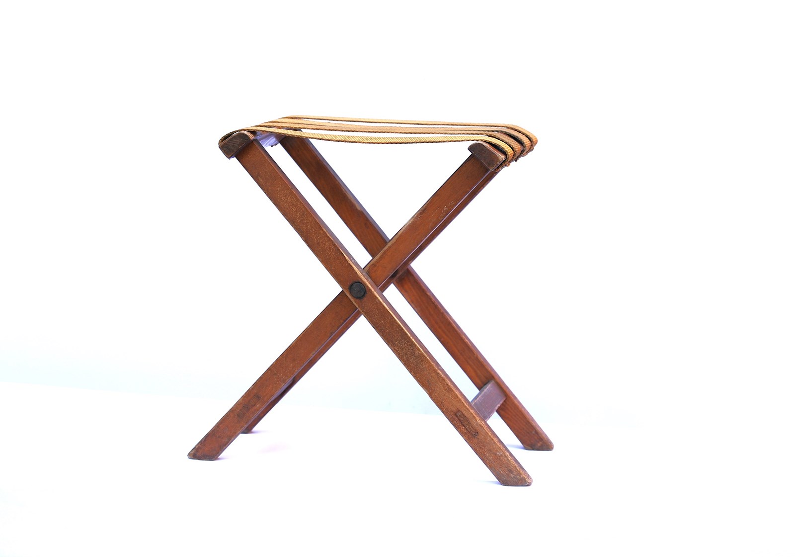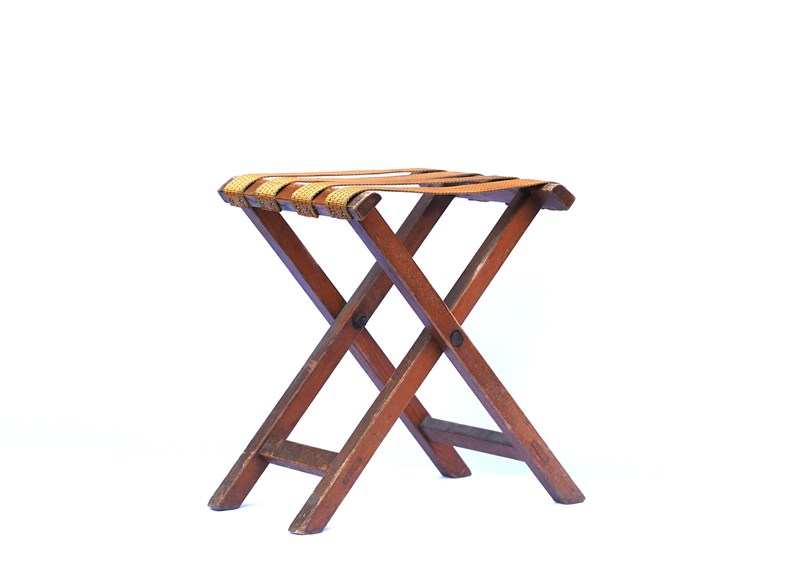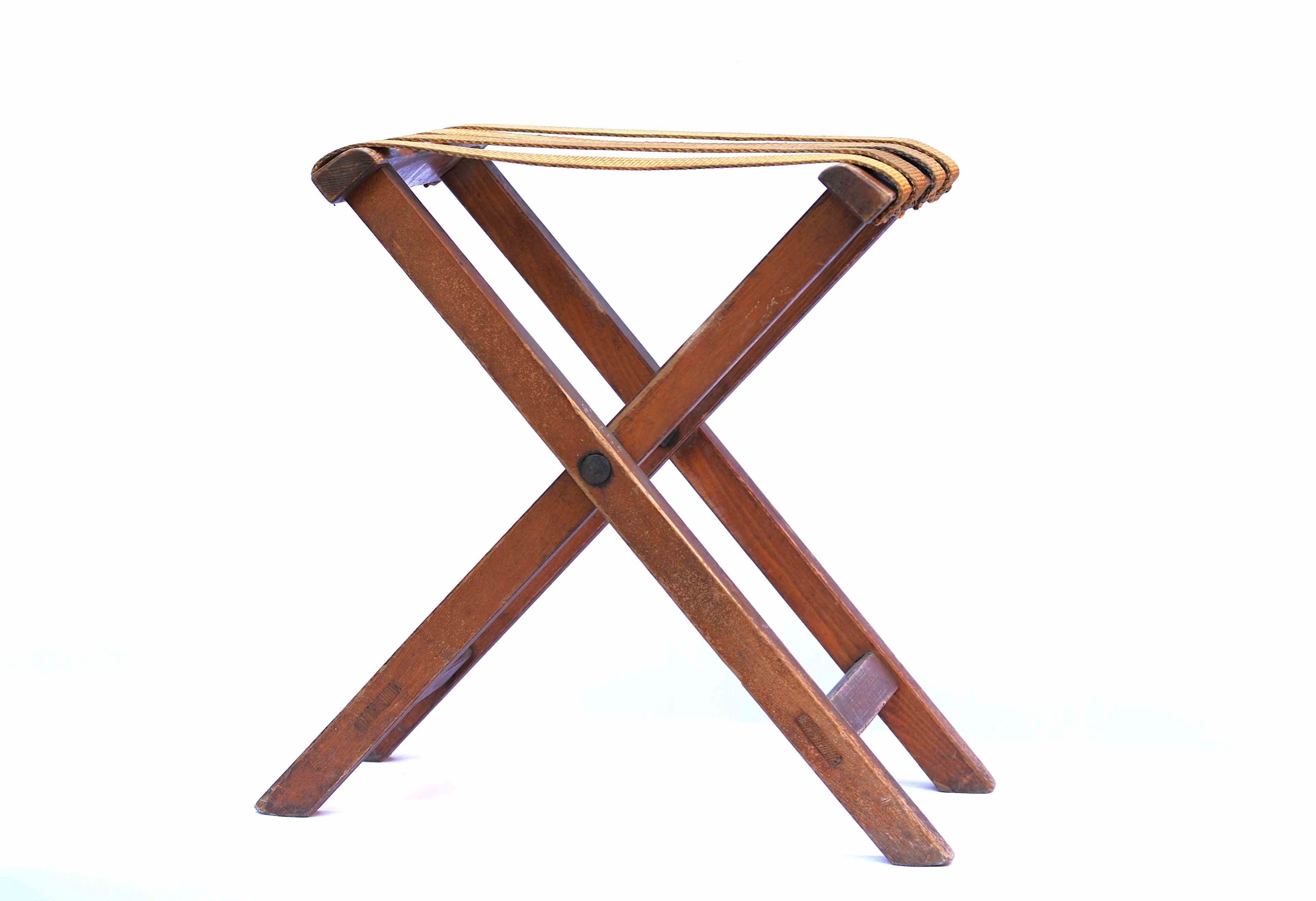 A good vintage folding Ash wood luggage stand with golden webbing. Strong & sturdy. Appears to have been re-webbed several times in its life time, current webbing is good. Size when in use 20" High 17" Wide 14" Depth. Good look of age to it. Ready for immediate use. Sale includes UK inland tracked delivery.