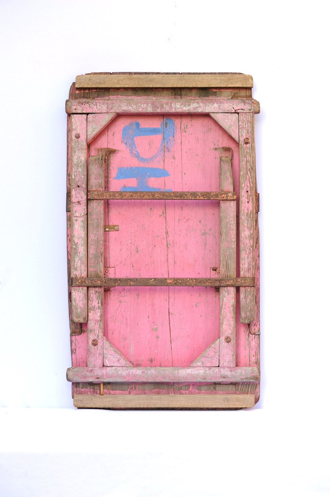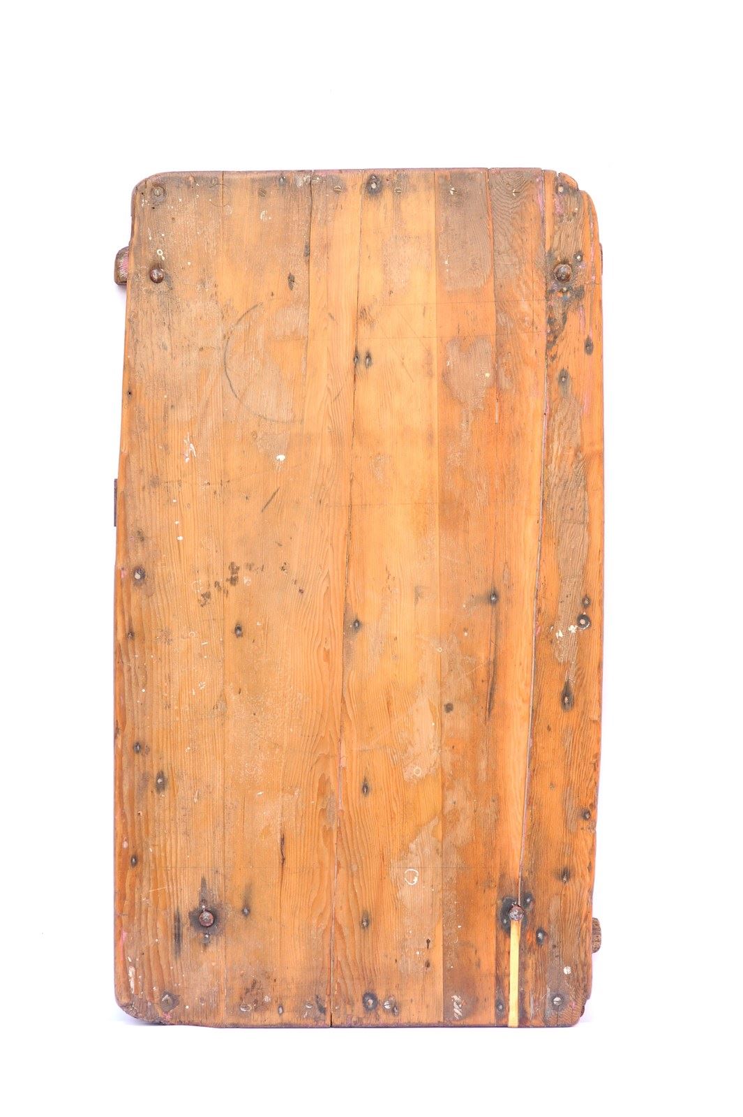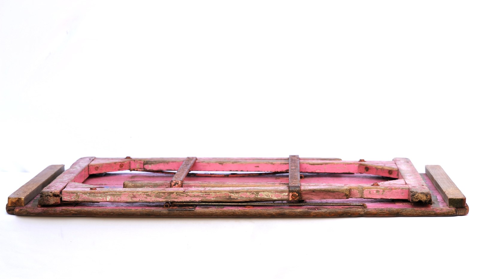 A wonderful antique pine folding trestle table of a manageable size & weight. In use height 28.5 inches, the top being 42 inches wide x 23 inches in depth, with a weight of around 12 kg. The top is nice & clean with a smooth finish so ideal for displaying items on. There are old historic use marks & wear to the table top all of which add to its appeal. The strapped legs & underneath have been left in original time aged condition. The table dates to the early 1900s and as such does have some lifetime running repairs. It stands well & folds away quite flat. A lovely compact trestle table with a great look. Sale includes UK inland tracked delivery.