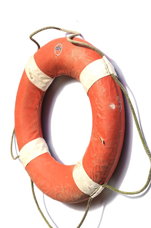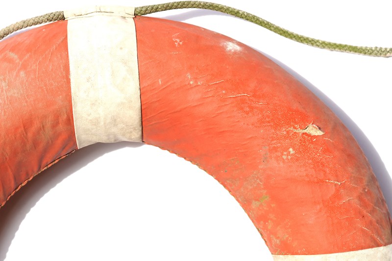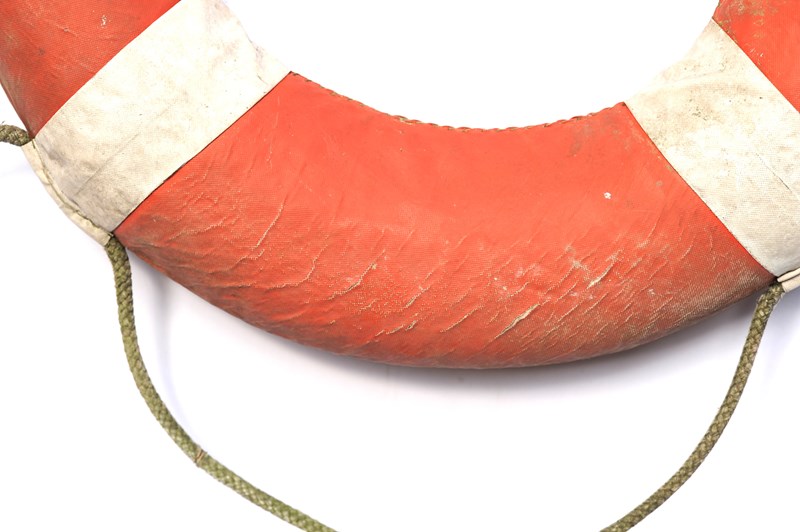 A good clean & dry weather beaten canvas & cork life buoy. Approximately 23 inches in diameter. Displays well, it has a really good time aged look to it, could be used in or out. Sale includes UK delivery.