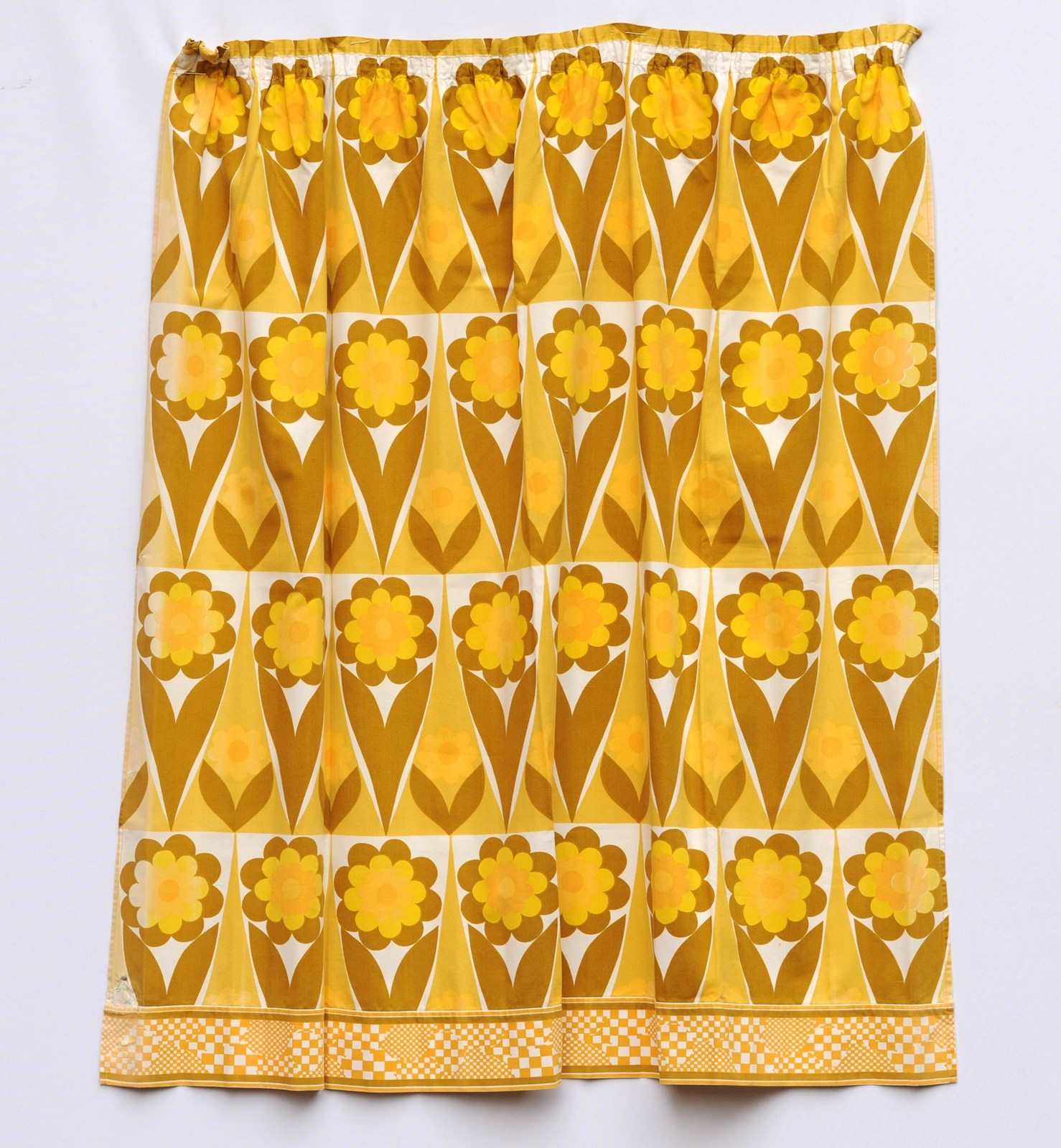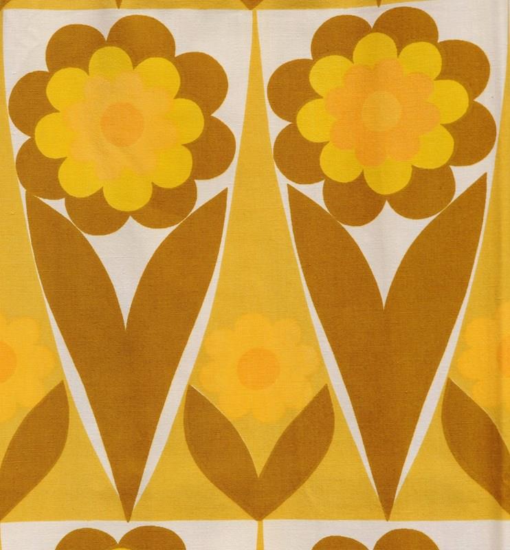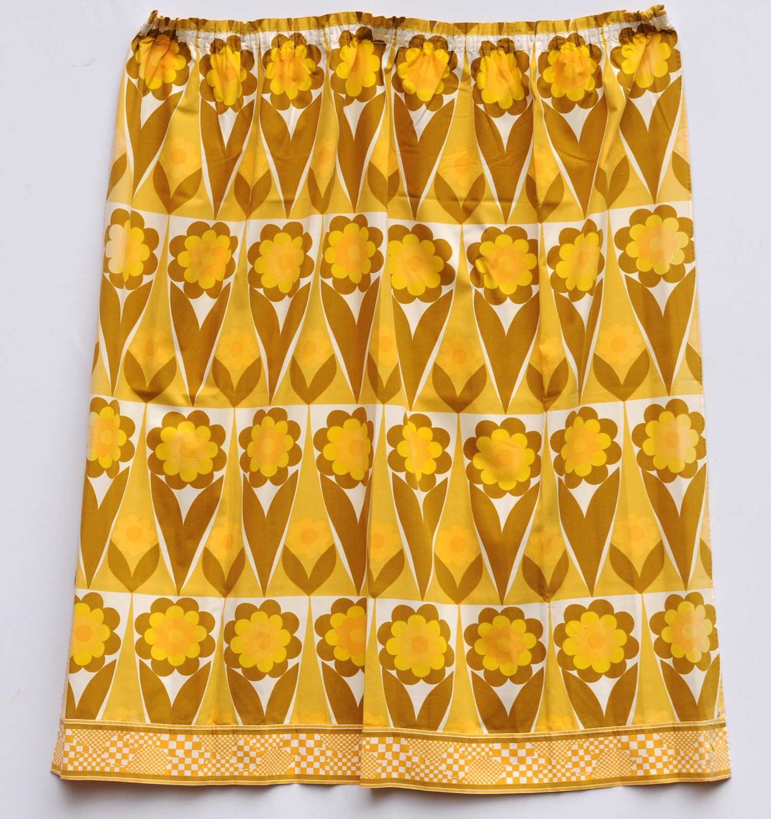 (SOLD) Curtains Orange Yellow Flower Curtain Fabric Vintage Textile Window