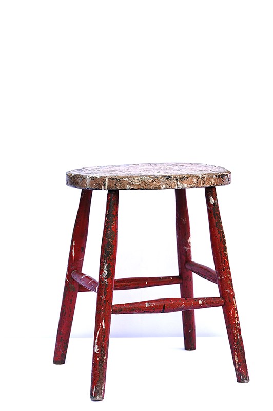 A wonderful antique paint covered Elm & Beech stool. Numerous layers of old, chipped & worn paint, it has a great original untouched visual look to it. Strong & sturdy. Height 18 inches. Width 14.5 inches. Depth 11 inches. Sale includes UK inland tracked delivery. Returns are happily accepted.