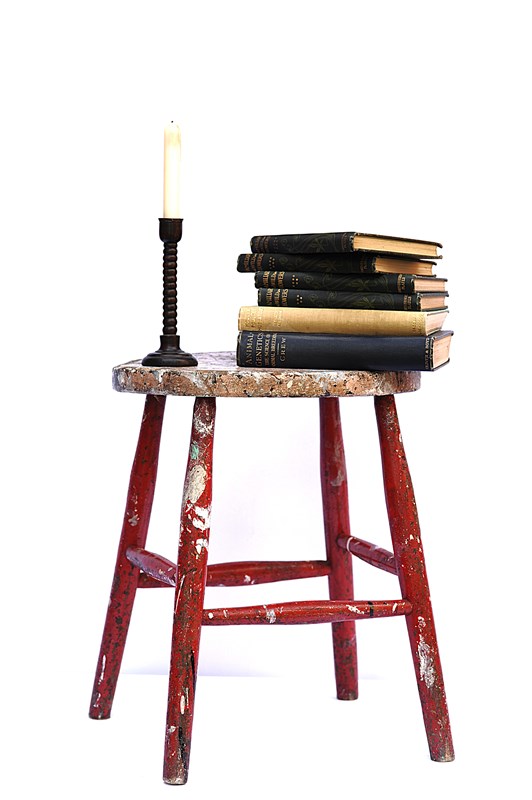 Painted Elm & Beech Stool Antique Wooden Stool Seat Chair Old Vintage Step Book