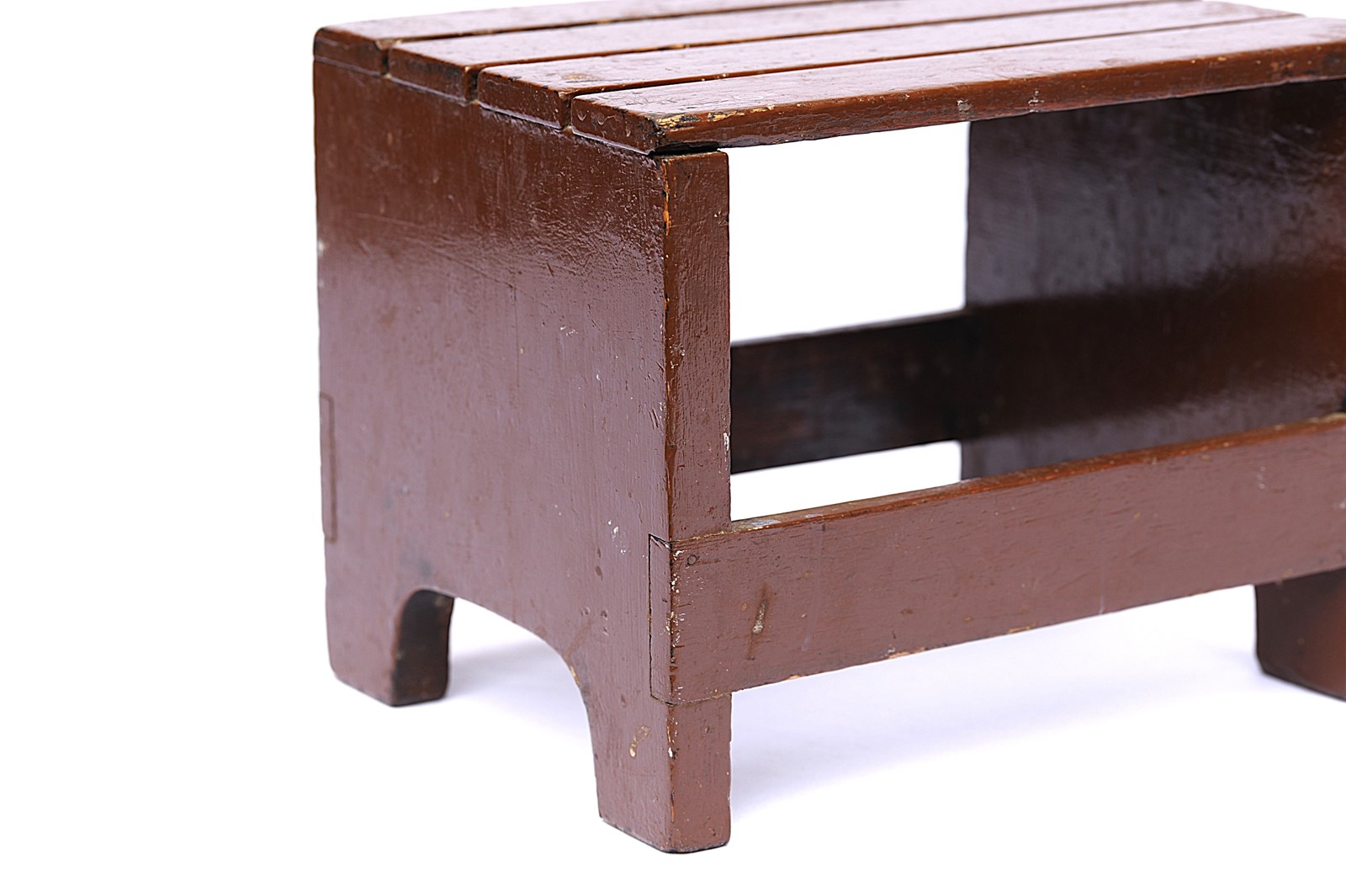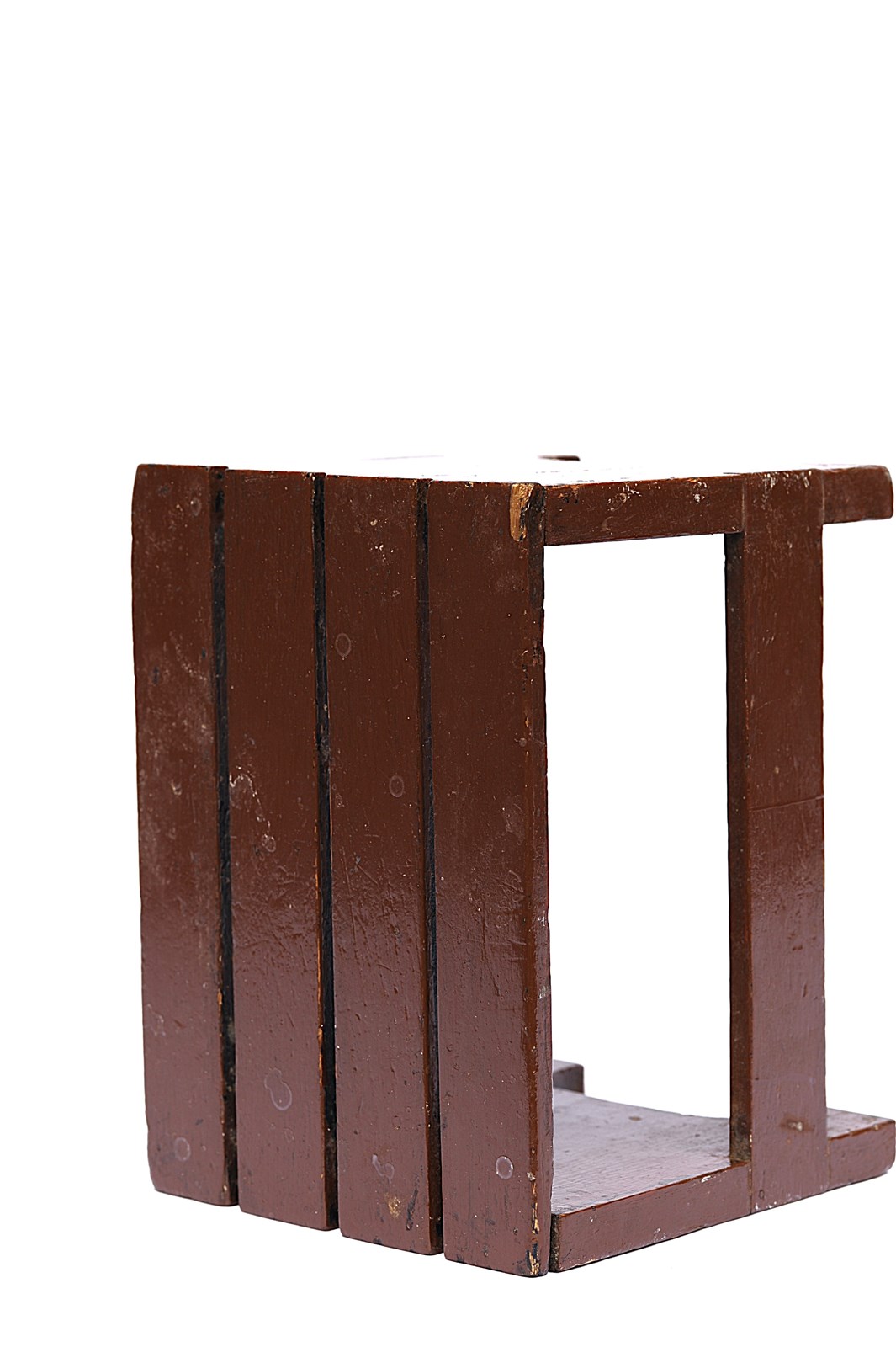 A simple country made Elm Box Stool in its original period brown paint. Slatted top. Good untouched original sturdy condition, sits well on the floor. Measurements 12 " x 9" x 9" in height. Sale includes UK inland tracked delivery. Returns are happily accepted.
