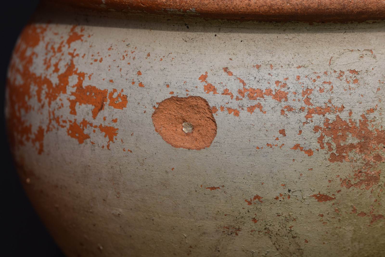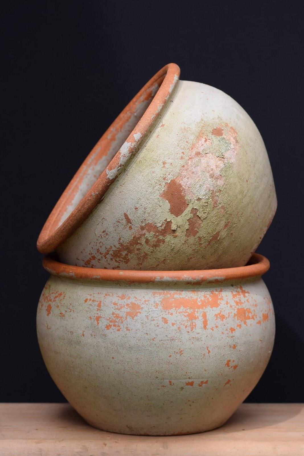 Pair Terracotta Planters Painted & Worn Old Vintage Flower Pots Hand Thrown Pot