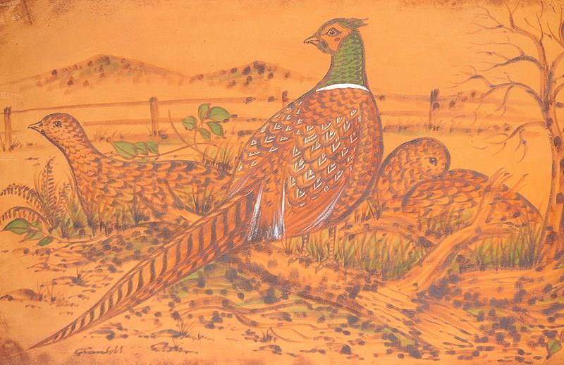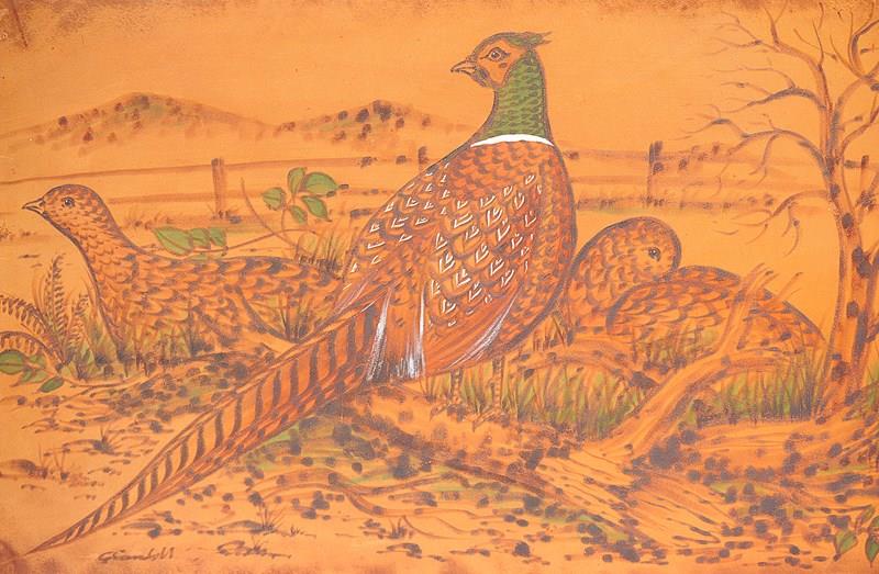 Pheasant Pokerwork Picture George Cundill Folk Art Painting Wildlife Leather