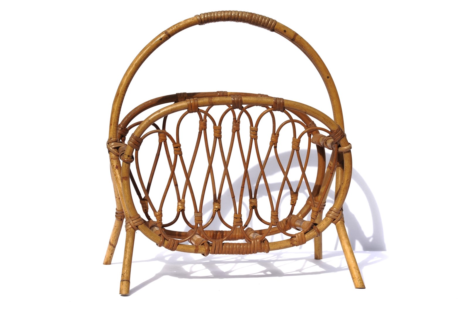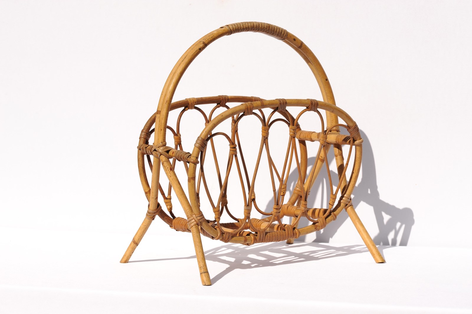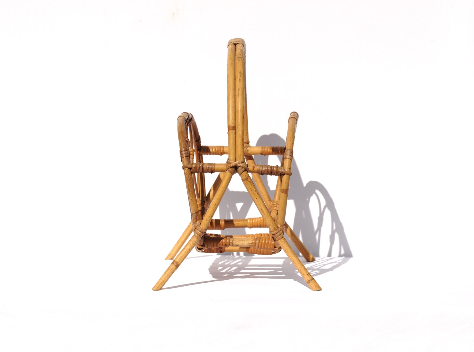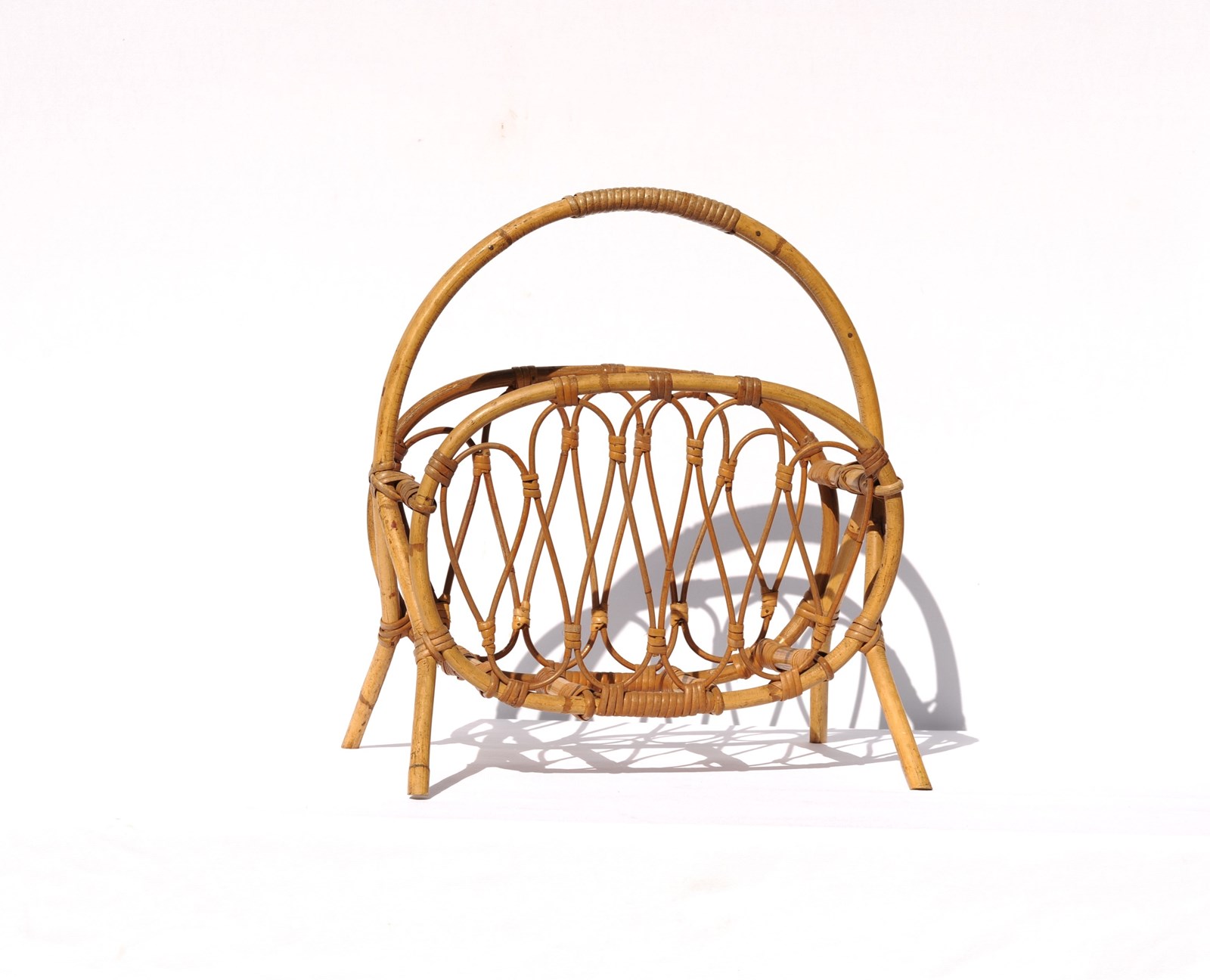 Rattan & Bamboo Magazine Rack Mid Century Furniture Wood Storage Basket Wicker